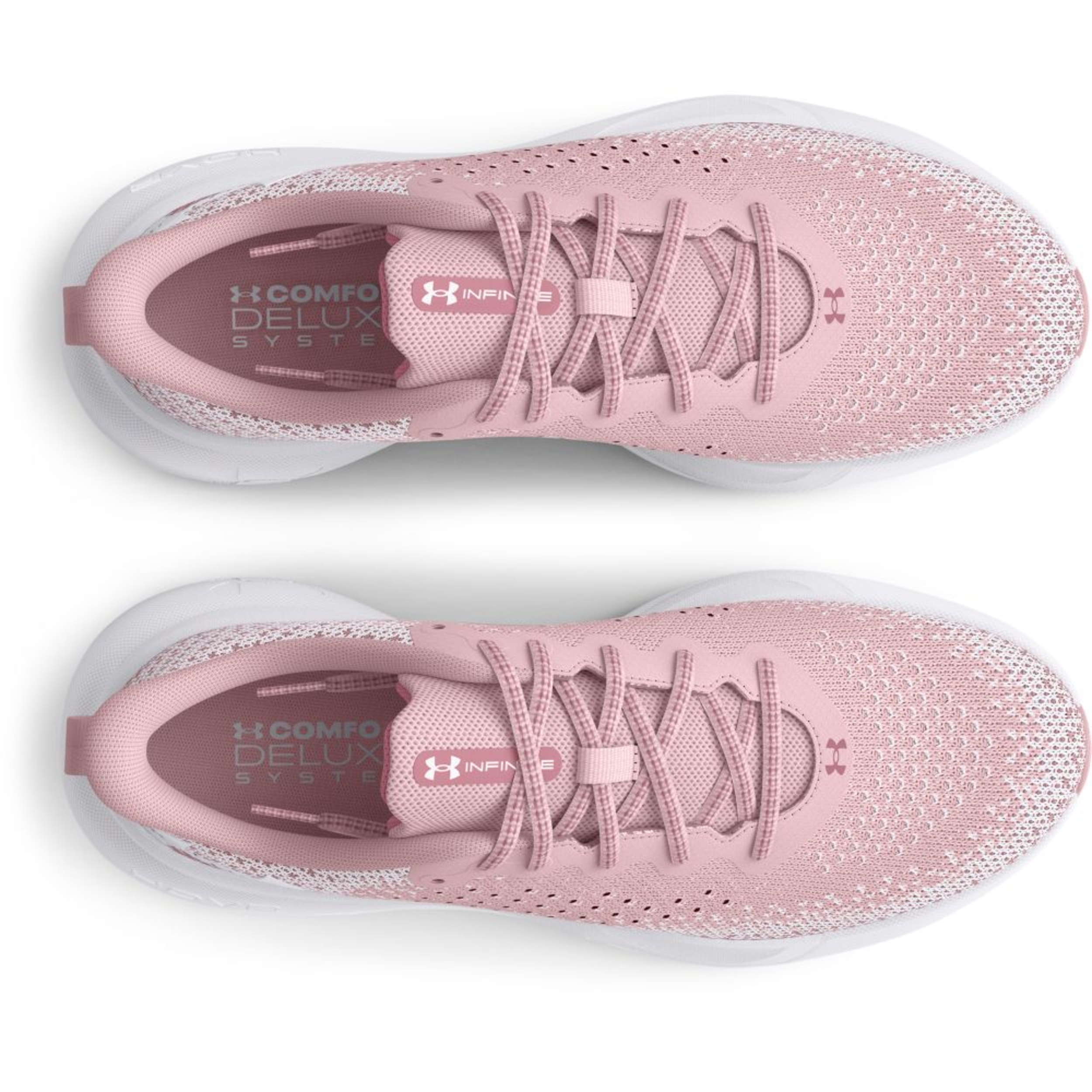 The Under Armour Women's Infinite Running Shoes offer steady support for long runs and challenging workouts. With a locked-in fit and responsive HOVR™ cushioning, they absorb impact and return energy to keep your legs fresh. The breathable knit upper provides durability, and the rubber outsole improves traction and flexibility for a strong toe-off in these women's shoes.