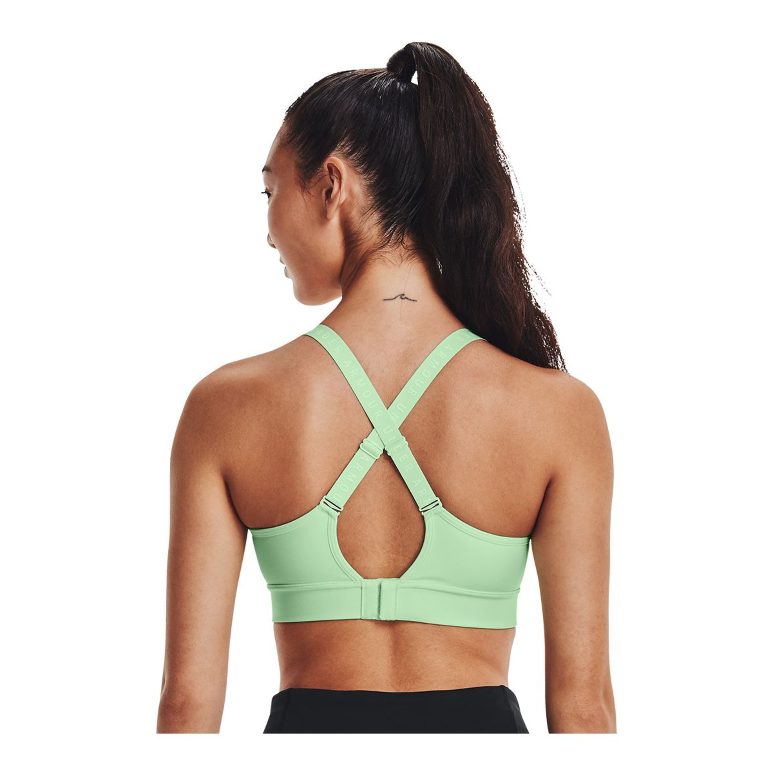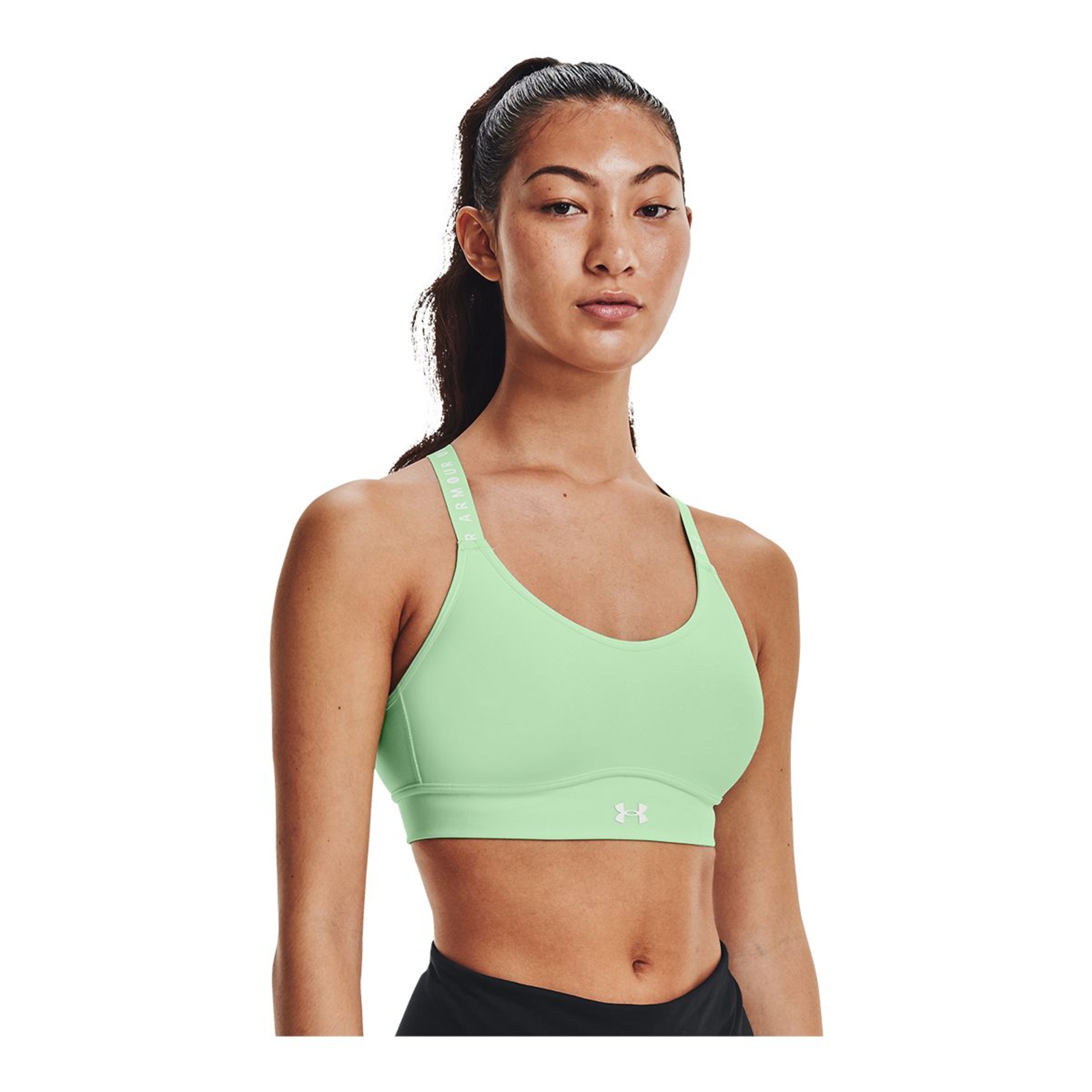 The Under Armour Women's Infinity Sports Bra provides tailored medium support ideal for activities like cycling and weight training. It features moulded, PU-injected padding for extra comfort, adjustable straps for a custom fit and breathable mesh panels to help you keep cool. The Under Armour sports bra's HeatGear® fabric ensures a comfortable, sweat-wicking fit with a hook-and-eye closure for ease of wear.