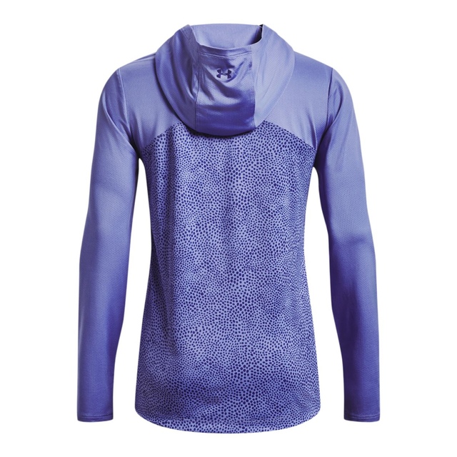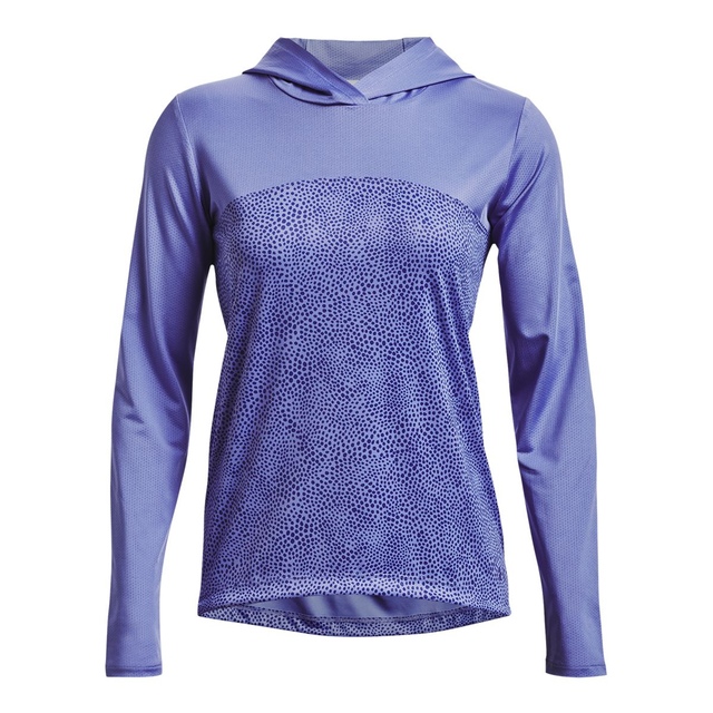 The Under Armour Women's Iso-Chill Hoodie features Iso-Chill fabric technology to distribute body heat for a cool touch. It includes UPF 50+ sun protection, a mesh back panel, and side vents. The relaxed-fit hoodie also features a crossover hood that provides extra coverage during your outdoor activities.
