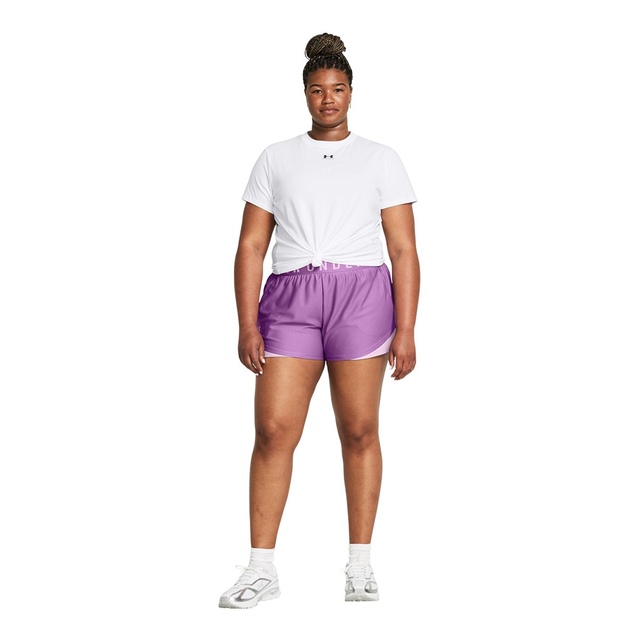 The Under Armour Women's Play Up 5 Inch Shorts are stylish, ultra-comfortable shorts for workouts and everyday wear. These lightweight, breathable shorts feature a soft knit construction, moisture-wicking material, and anti-odour technology. The Under Armour women's athletic shorts are designed with a flattering curved hem, convenient side pockets, and an eye-catching exposed elastic waistband.