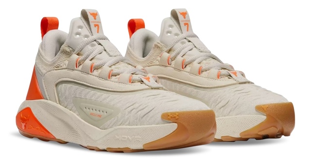 Put to the test by The Rock himself, the Under Armour Women's Project Rock 7 City Training Shoes are designed to help you push beyond your limits. Responsive Under Armour HOVR™ cushioning reduces impact, returns energy, and helps propel you forward. The Under Armour TriBase™ promotes natural motion, and provides flexibility to grip during lifts, while the durable rubber outsole with a toe cap offers protection through planks and other HIIT training. Crafted with a knit textile upper and a foam midsole, these training shoes are offering a regular shoe width for a comfortable fit.