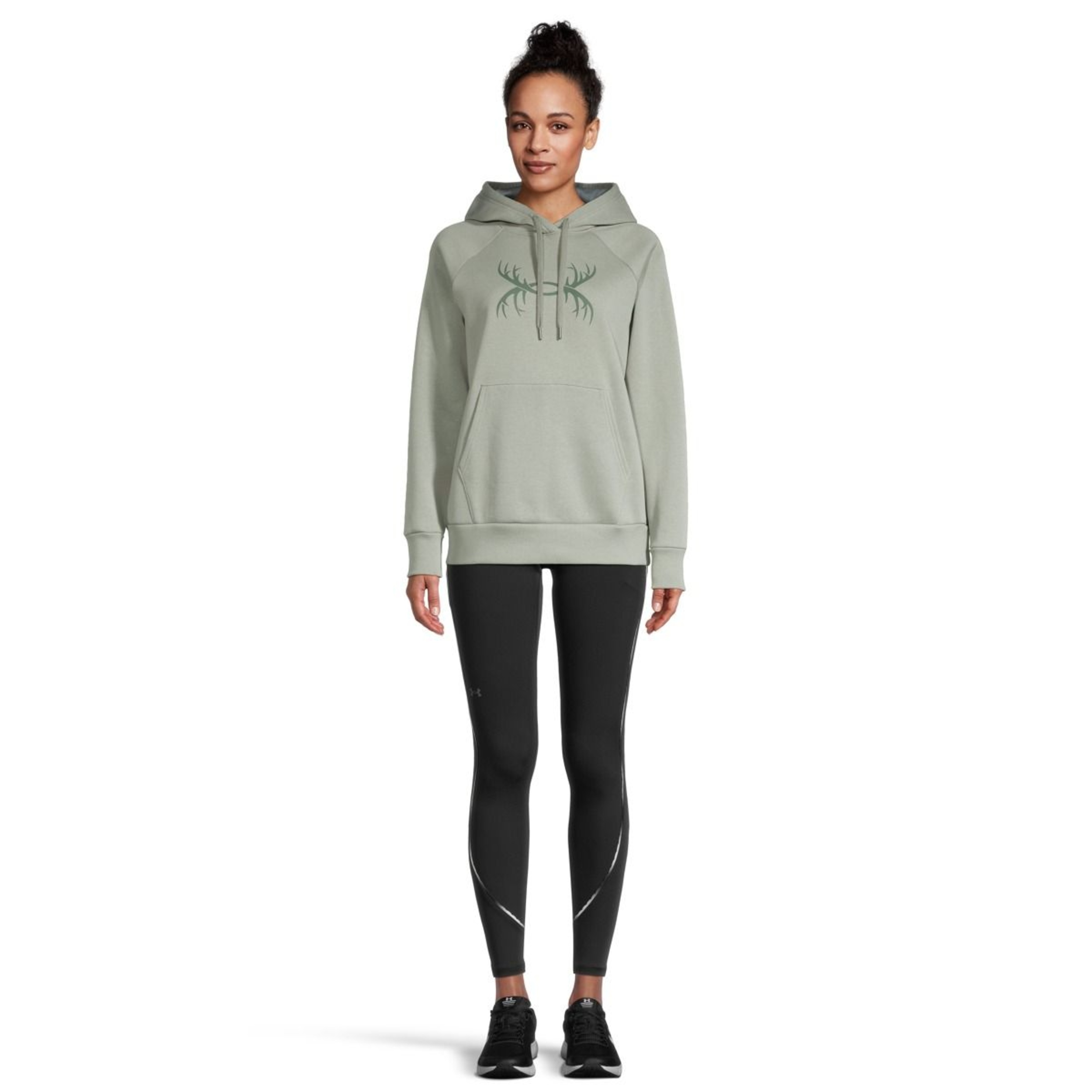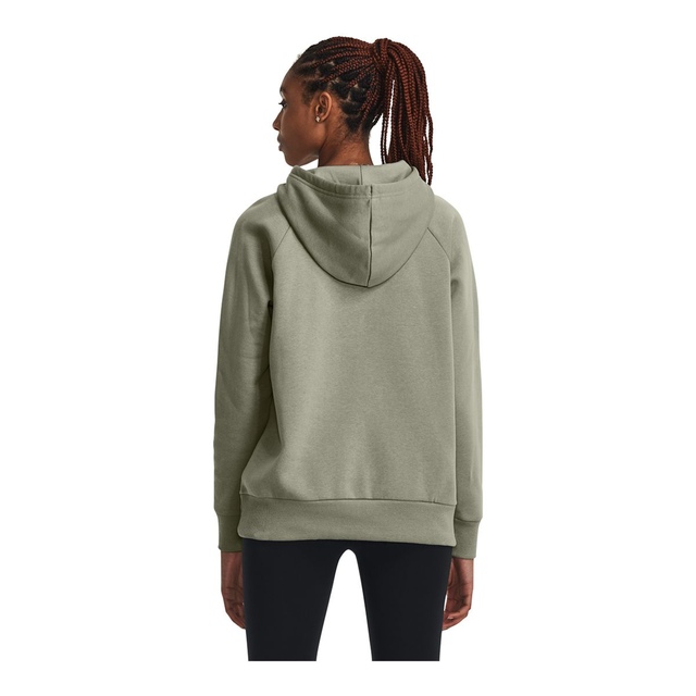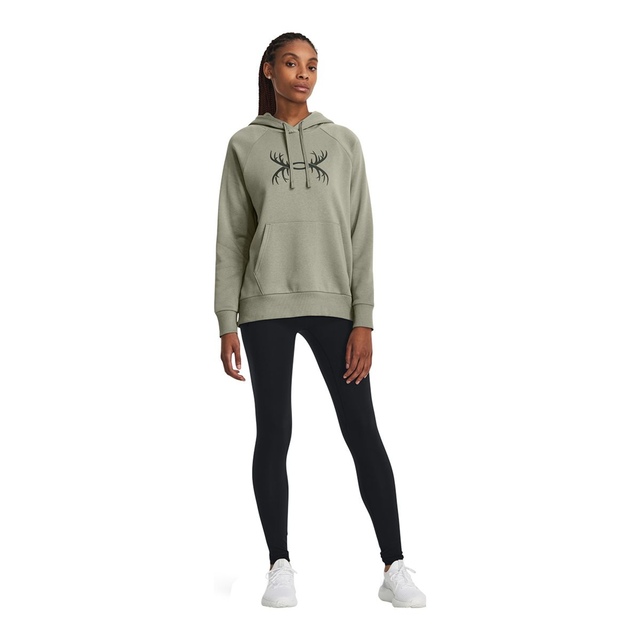 The Under Armour Women's Rival Antler Fleece Hoodie offers cozy warmth and comfort. It is made from soft cotton-blend fleece with a brushed interior and provides superior warmth. This men's hoodie's fitted ribbed cuffs and hem ensure a secure fit. At the same time, the front kangaroo pocket adds hands-free warmth, ideal for cool-weather activities.