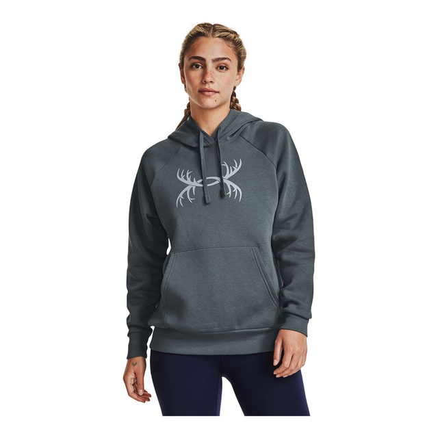 The Under Armour Women's Rival Antler Hoodie is crafted for comfort with its ultra-soft cotton-blend fleece and warm brushed interior. A roomy kangaroo pocket and secure rib-knit cuffs and bottom hem make this Under Armour hoodie an easy everyday layering option.