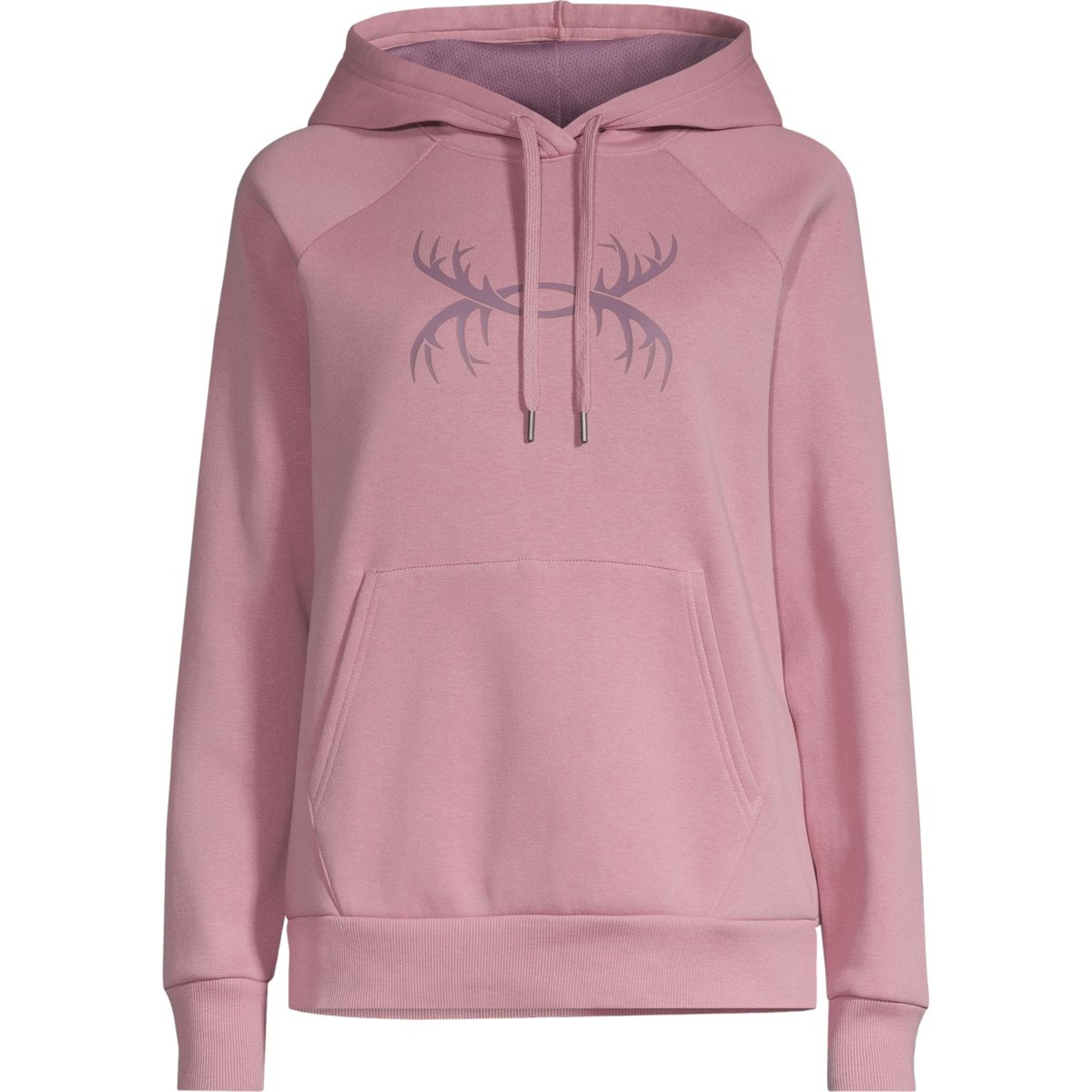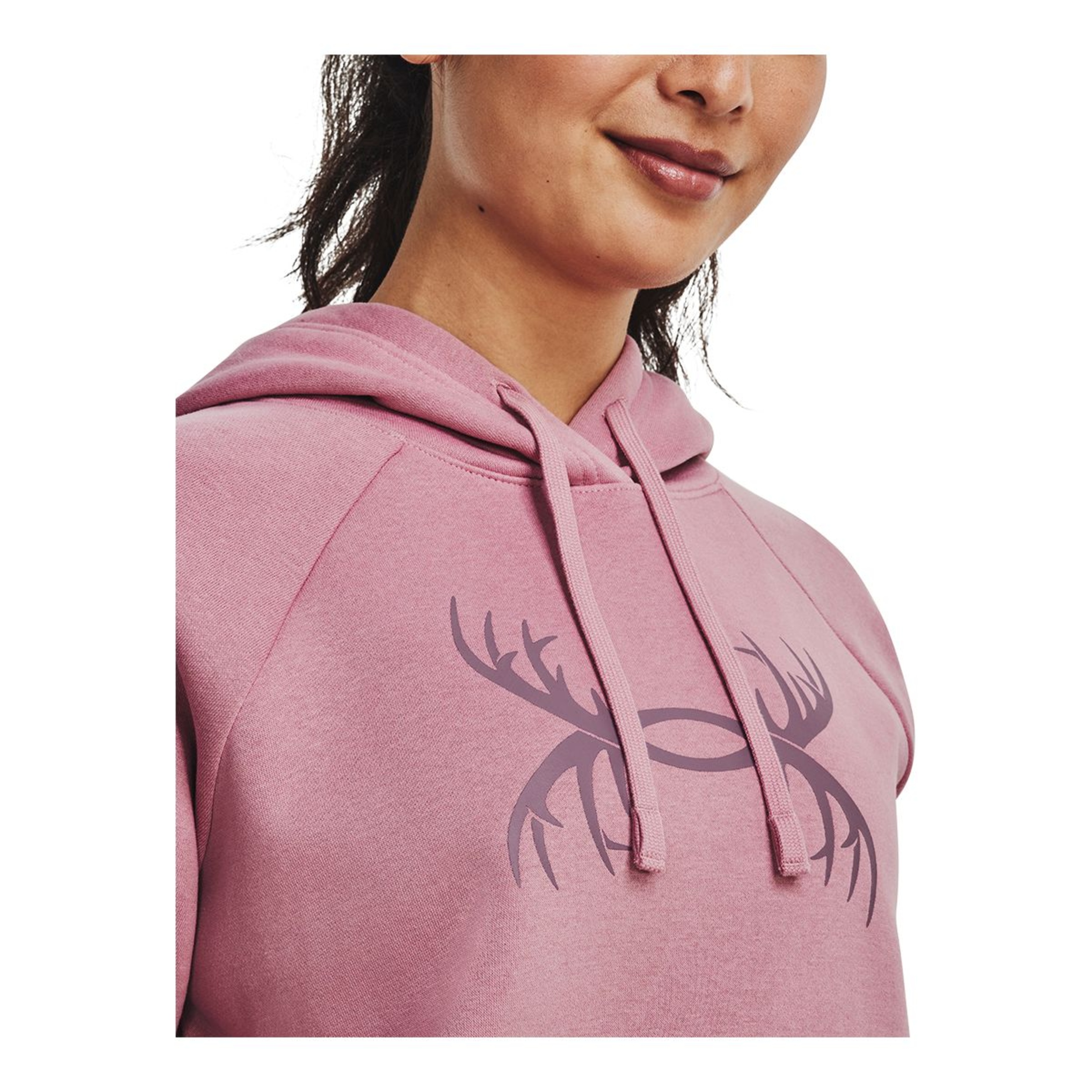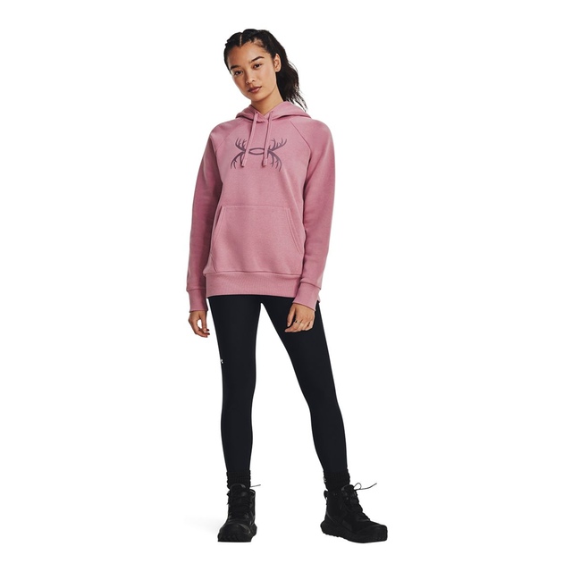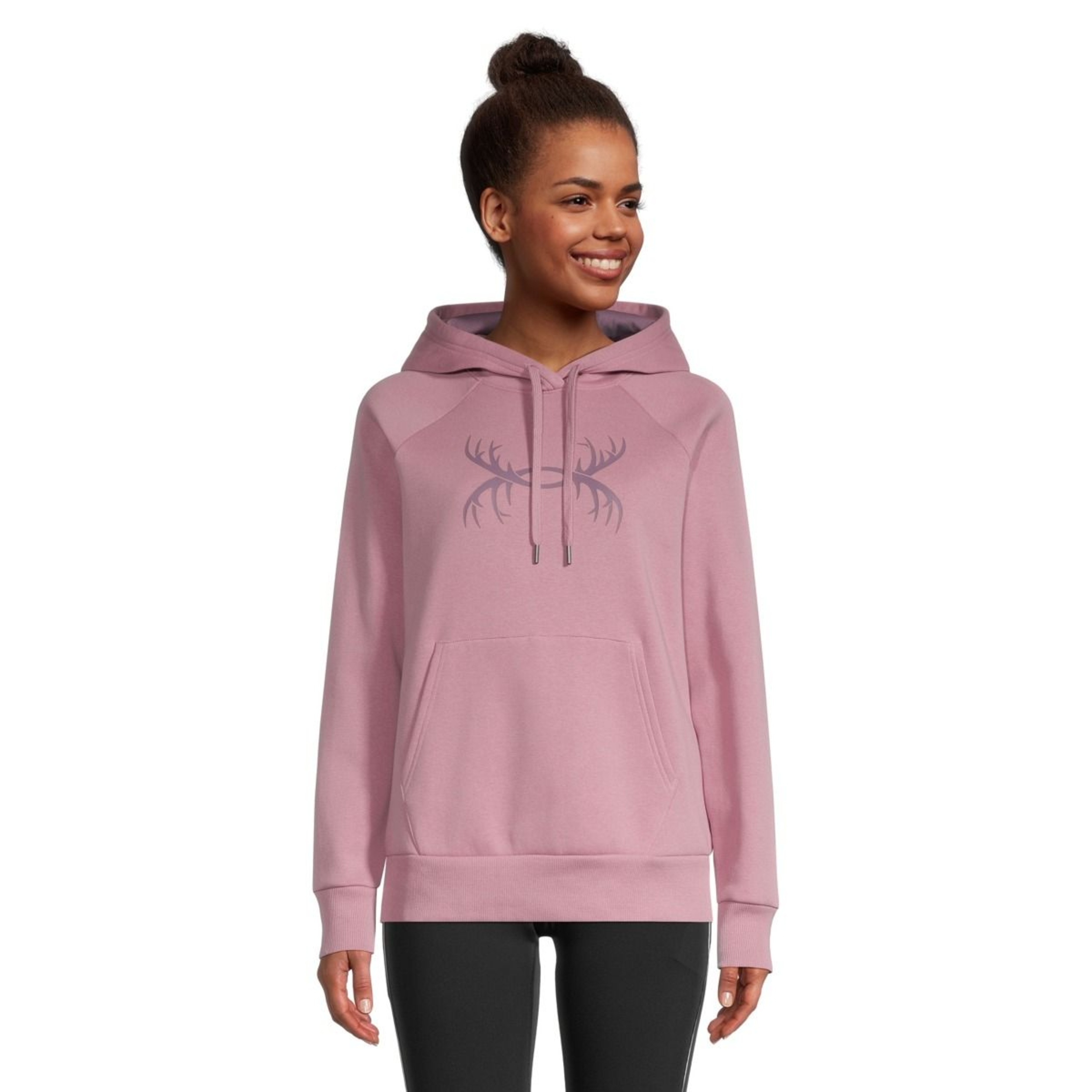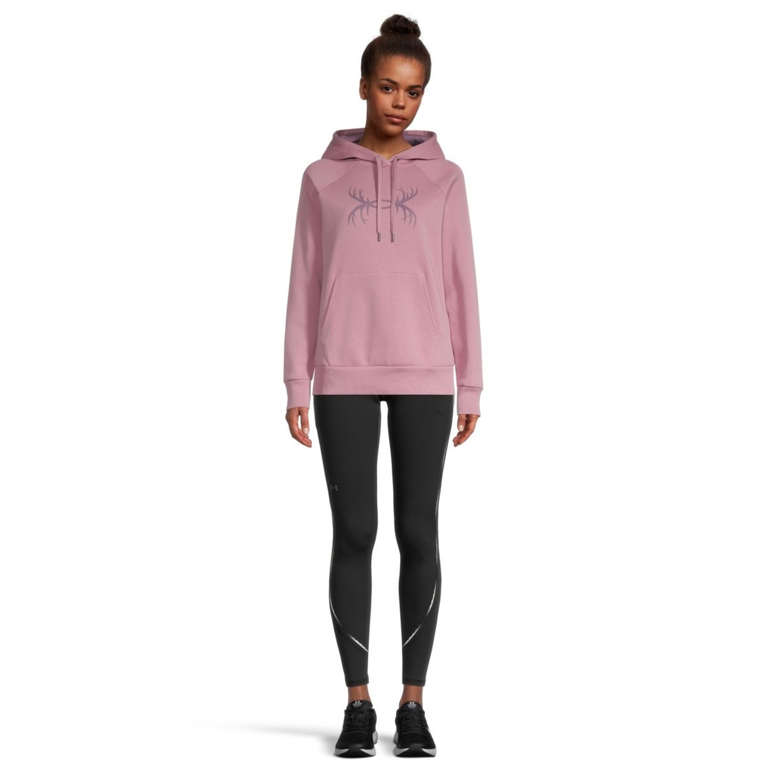 Stay warm and stylish with the Under Armour Women's Rival Antler Fleece Hoodie. Made from ultra-soft brushed fleece fabric, this pullover hoodie for women features a front kangaroo pocket and ribbed cuffs and hem for a snug fit. Perfect for cozy warmth and comfort, this versatile fleece hoodie is a must-have for your cold-weather wardrobe.
