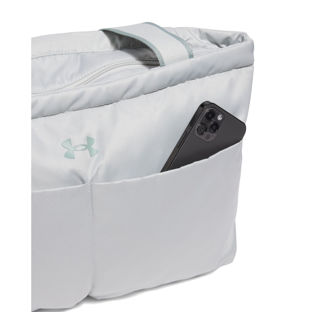The Under Armour Women's Studio Lite Tote Bag blends style and functionality. With a large main compartment and interior smartphone pocket, it keeps your essentials organized. The water-repellent treatment and Storm technology protect your belongings, while hair tie zipper pulls add convenience.