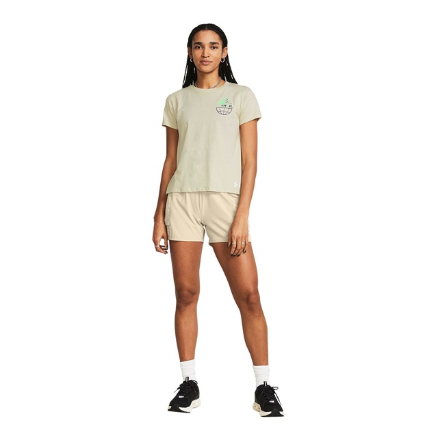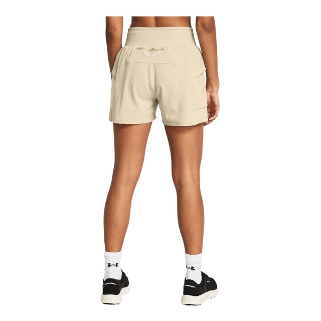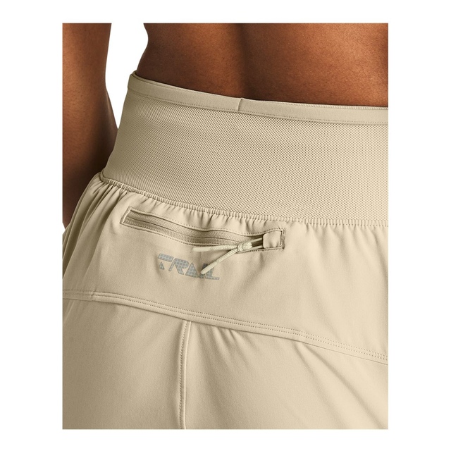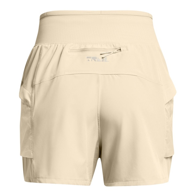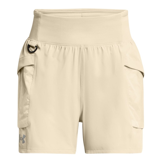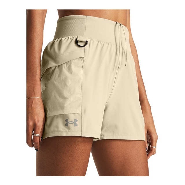 The Under Armour Women's Run Trail Shorts feature water-repellent, breathable fabric for demanding trails. Their wind-resistant stretch-woven construction and secure waistband offer comfort and durability. With storage pockets and a carabiner attachment, these Run Trail shorts provide functionality for outdoor activities.