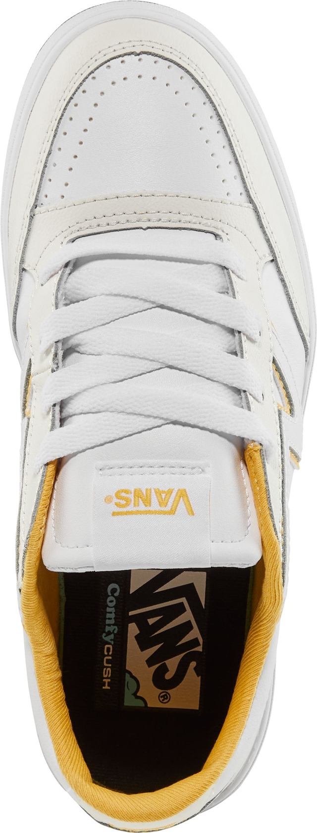 A Standout “Flying V” Logo Brands this Comfy 80s-Inspired Shoe The Lowland ComfyCush is an archival 80s Vans silhouette with a slim profile and a ComfyCush outsole for modernized comfort. Originally designed for tennis in the early 80s when Vans was experimenting with athletic-focused footwear, this low-top style maintains a familiar look while adding the excitement of our heritage “Flying V” Vans logo.