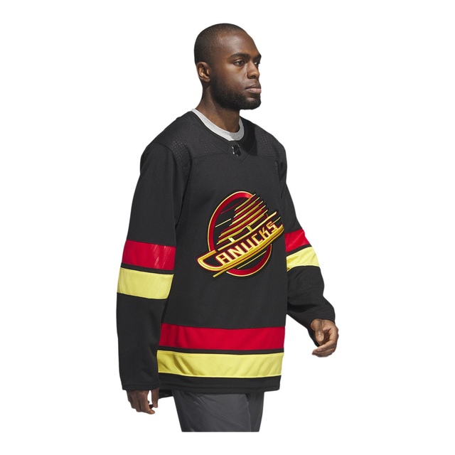Launched in 1992, NHL third jerseys are now such a staple, many teams post their alt-jersey schedule so fans can suit up in tandem when their squad takes the ice. Pull on this adidas Vancouver Canucks third hockey jersey, and join in the fun. The look stays authentic but has a fresh feel for fans and players alike. Made with 100% recycled materials, this product represents just one of Adidas’s solutions to help end plastic waste.