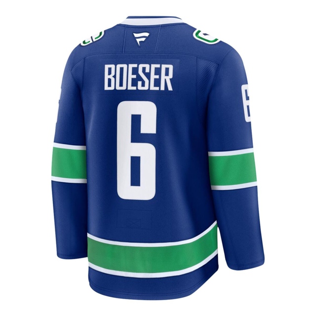 The Vancouver Canucks Fanatics Brock Boeser Premier Jersey is crafted for devoted fans who desire an experience close to the authentic on-ice National Hockey League jerseys. This premium jersey boasts a lightweight recycled polyester construction, high-definition embroidery, and official branding, uniting passion and sustainability in a must-have for Canucks enthusiasts.