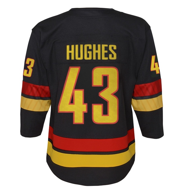 The Vancouver Canucks Outerstuff Hughes Premier Jersey with Flying Skate logo is a true classic. Iconic in design, colour, and fabrication that pays tribute to Canucks history. Complete with Quinn Hughes player name & number, this is a must have jersey for any young Canucks fan.