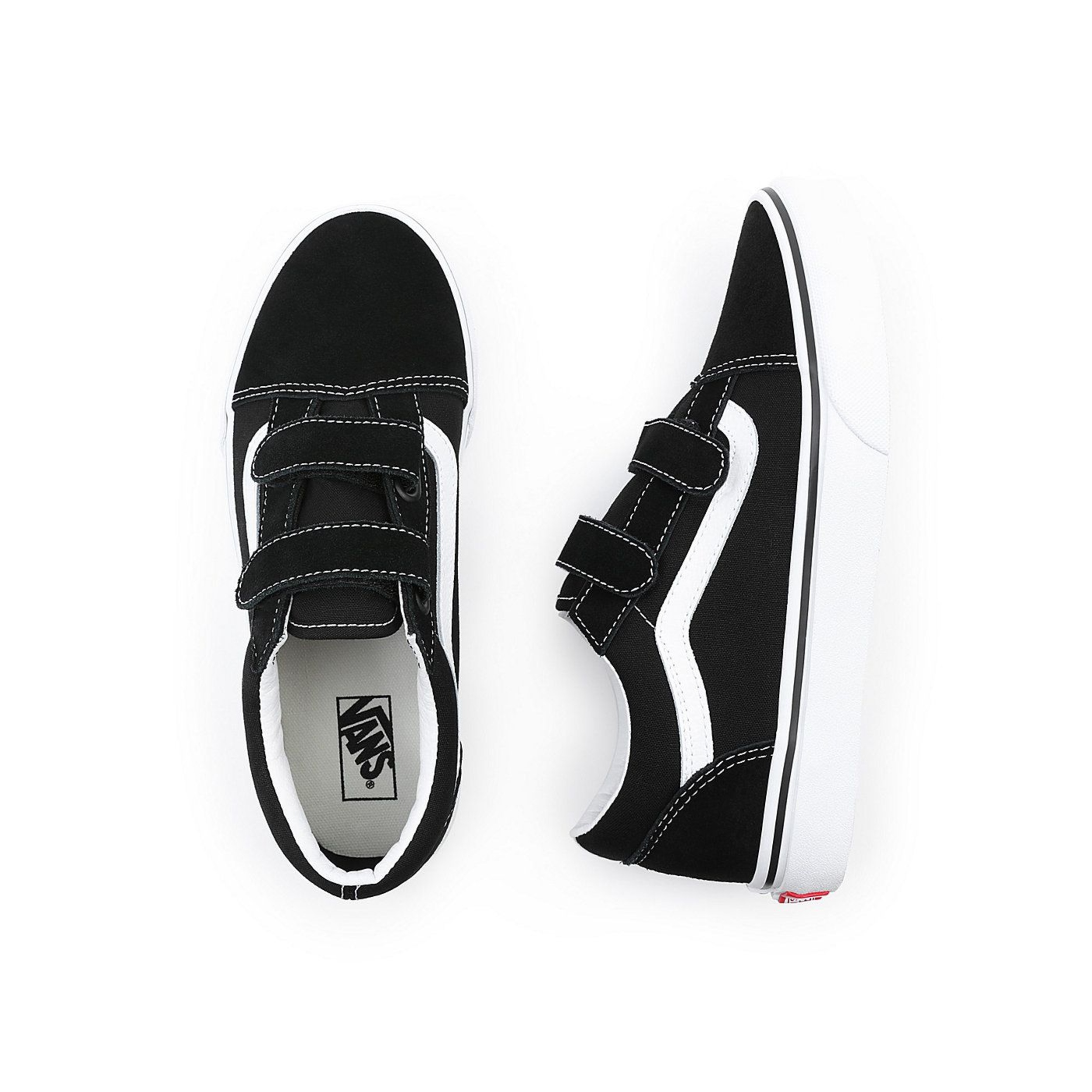 The Vans Kids’ Old Skool V Skate Shoes offer a fresh take on the classic sidestripe design, replacing traditional laces with double hook-and-loop closures for a secure and easy fit. Featuring durable textile uppers, these low tops provide comfort and style. With reinforced toe caps, padded collars and signature rubber waffle outsoles, these skate shoes ensure long-lasting wear for active kids.