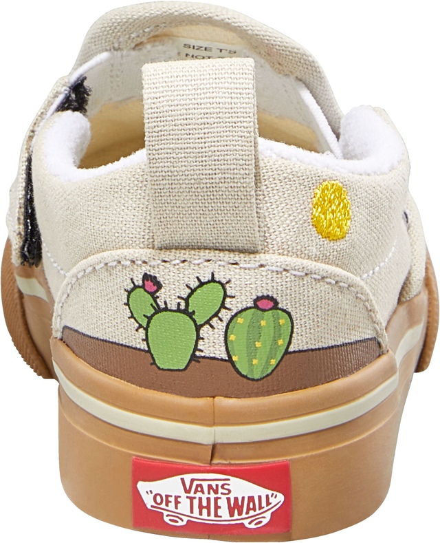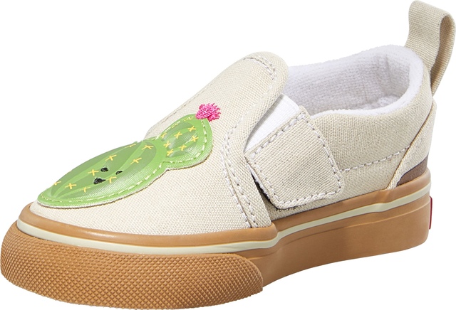Strap Closures Create a Kid-Friendly Fit on this Iconic Sidestripe Shoe. The Kids Slip on V reimagines our iconic silhouette by swapping traditional laces for double hook-and-loop closures. Made with signature canvas uppers and featuring flower appliques along the sidewalls, this low-top style maintains its classic appeal while providing an easy, secure fit that ensures all-day comfort.