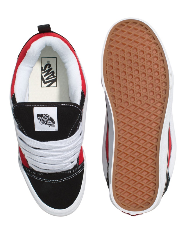 The Knu Skool is a modern interpretation of a classic 90s style, defined by its puffed-up tongue and 3D-molded Sidestripe, and tied off with oversized, chunky laces. With its in-your-face profile and dramatic style details, the Knu Skool plays off the original Old Skool while blending an icon of the past with today's trends.