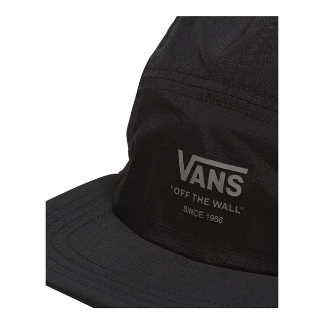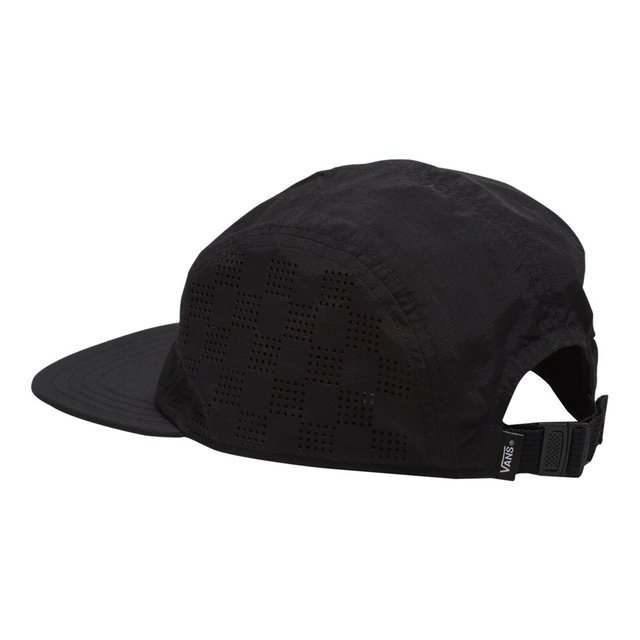 The Vans Men's Outdoors Camper Hat is built for outdoor adventures with a recycled nylon construction. Featuring laser-cut ventilation panels for enhanced airflow and a soft visor for sun protection, this 5-panel cap offers breathable comfort. The woven Vans patch adds signature style, making it ideal for hiking, camping, or casual outings.