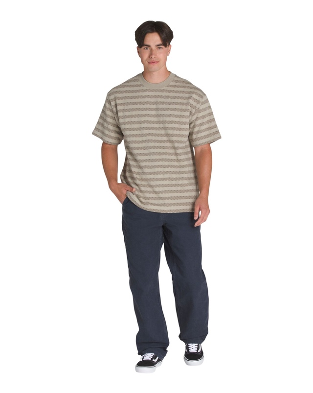 The Vans Men's Palmer Jacquard T Shirt is a comfortable casual top made from soft, breathable 100% cotton terry cloth fabric. This relaxed-fit tee features a stylish jacquard stripe pattern and a classic short sleeve crew neck design for effortless everyday style.