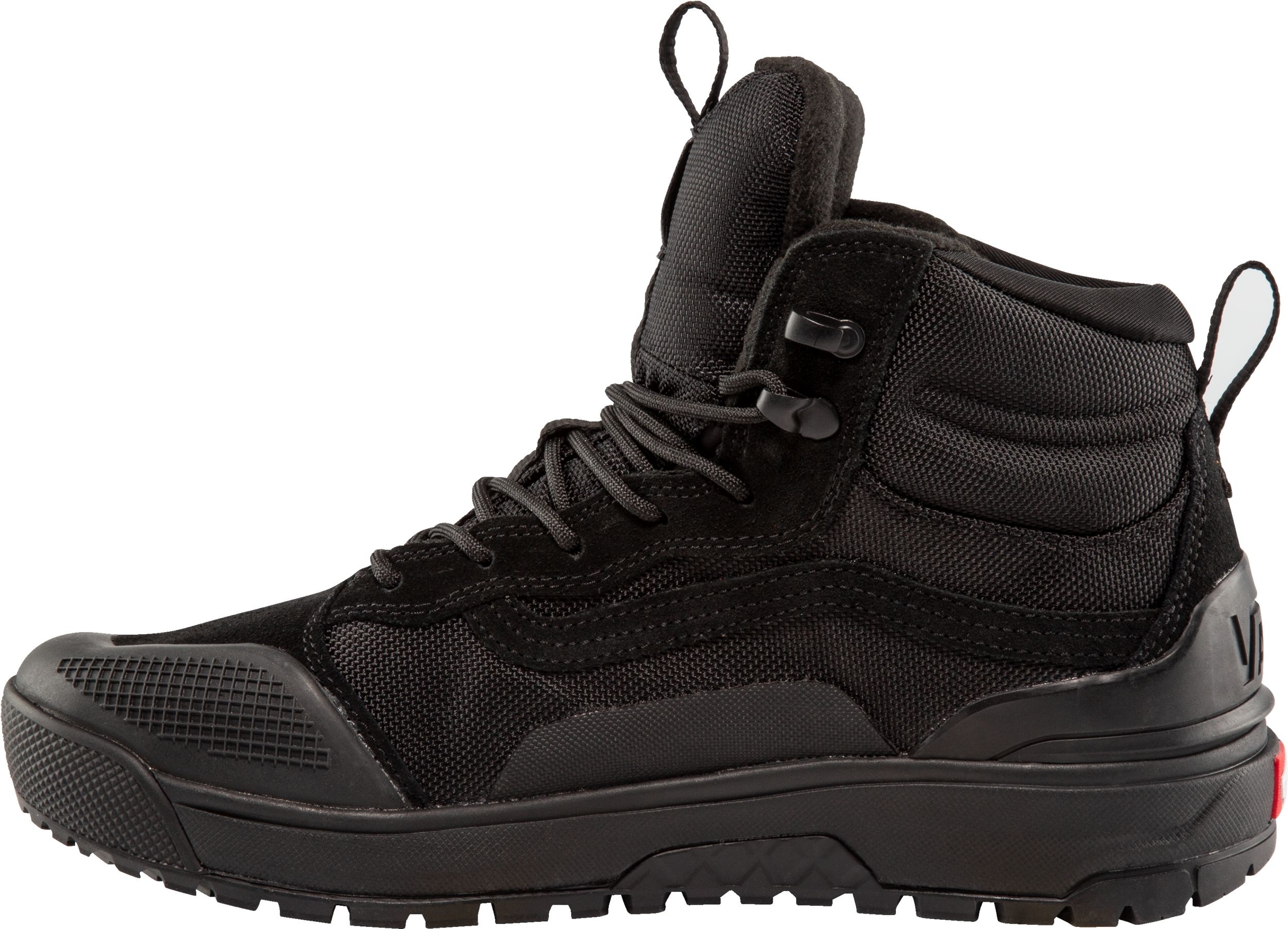 Introducing Vans MTE, designed for outdoor enthusiasts. The UltraRange Exo Hi MTE-1 combines comfort and protection from the elements. It features a comfortable cushioning midsole, all-condition rubber outsole, enhanced thermoregulation, breathable upper, and optimal fit. With aggressive traction, thermal insulation, moisture management, and comfort performance, these shoes are perfect for any adventure.