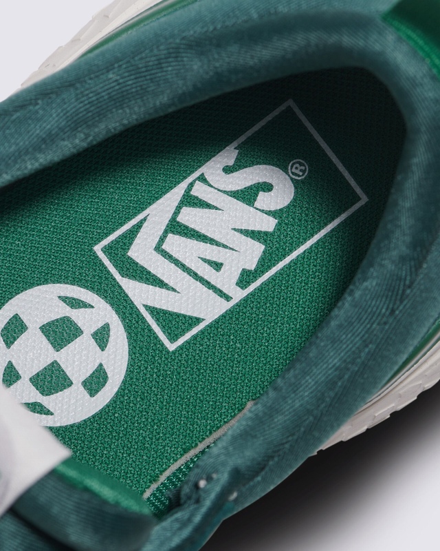 UPPER MATERIAL: Made with regenerative leather, sourced from farms implementing regenerative land management intended to promote biodiversity, enhance water cycles, improve soil health and sequester carbon, and 100% recycled PET textiles. Vans leather products support responsible manufacturing via the Leather Working Group.