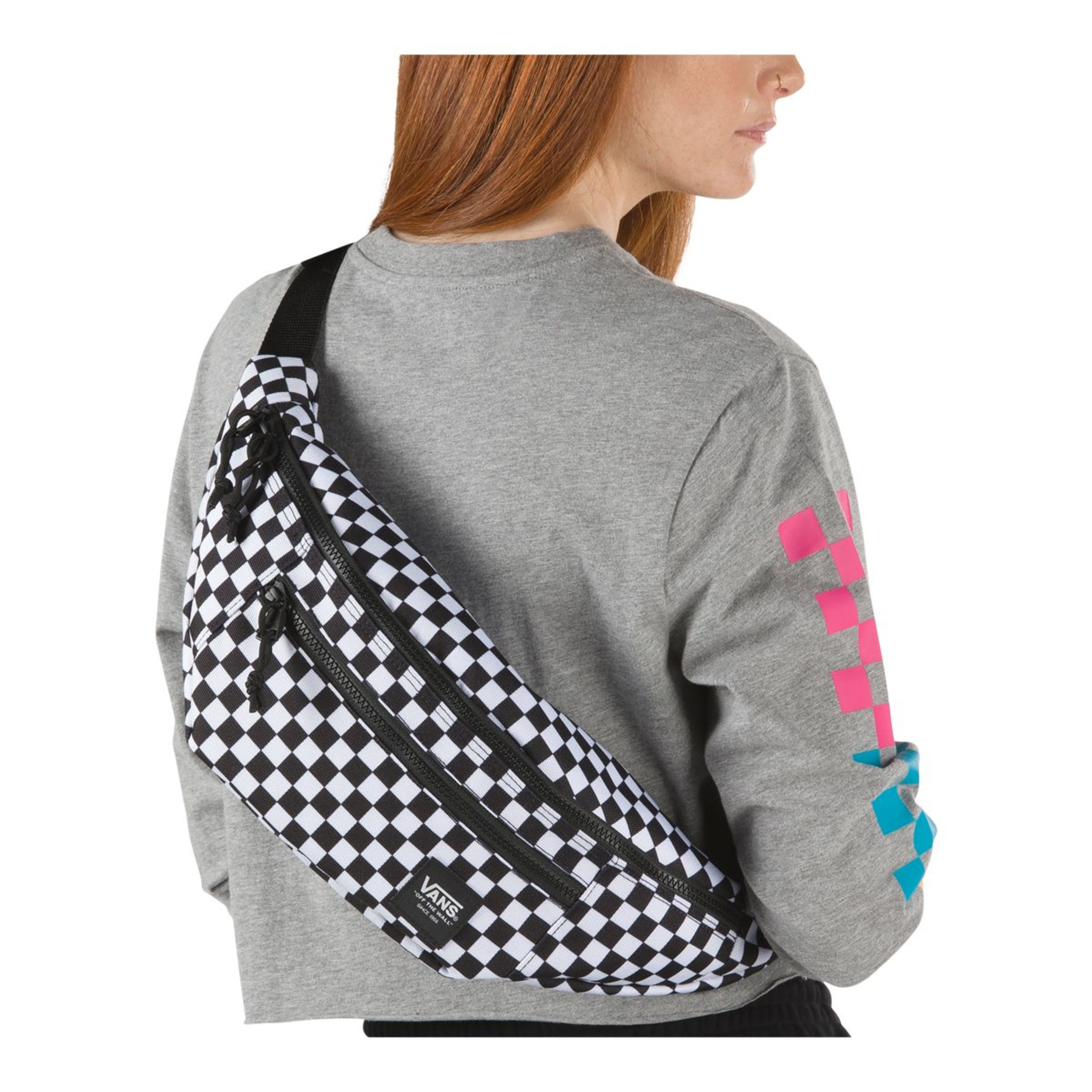 Bold checkerboard branding stamps the Ranger Waist Pack, a versatile hip pack and crossbody bag with an adjustable strap, multiple pockets, and a classic logo patch.