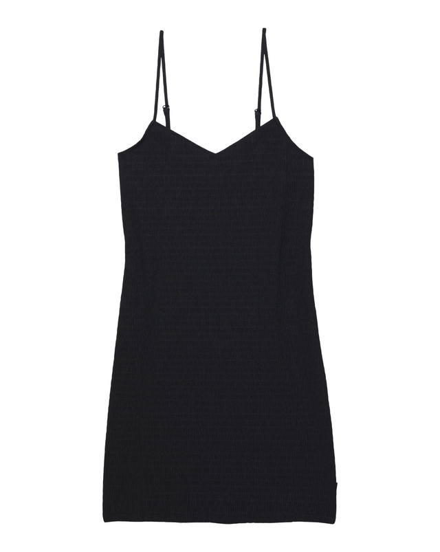 Great for the warmer days, Benton Cami Dress looks amazing layered, dressed up, or worn as-is. This crinkle knit cami dress also features adjustable straps, and flag label at the seam for branding.