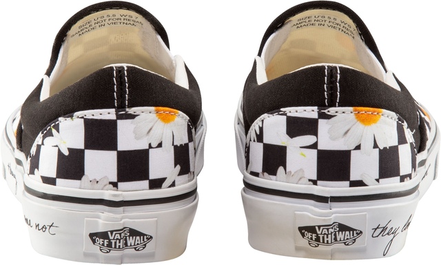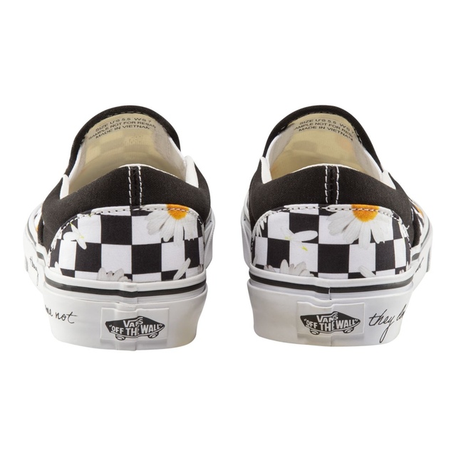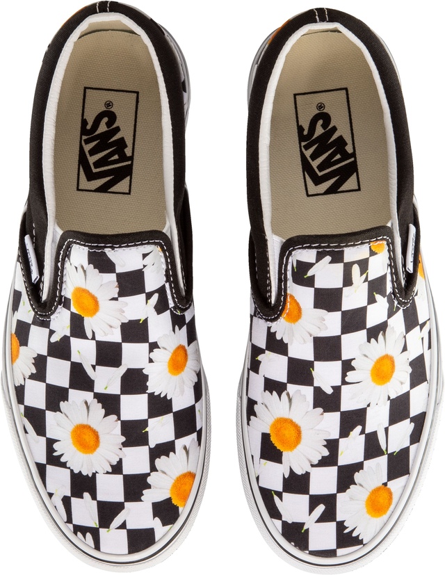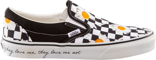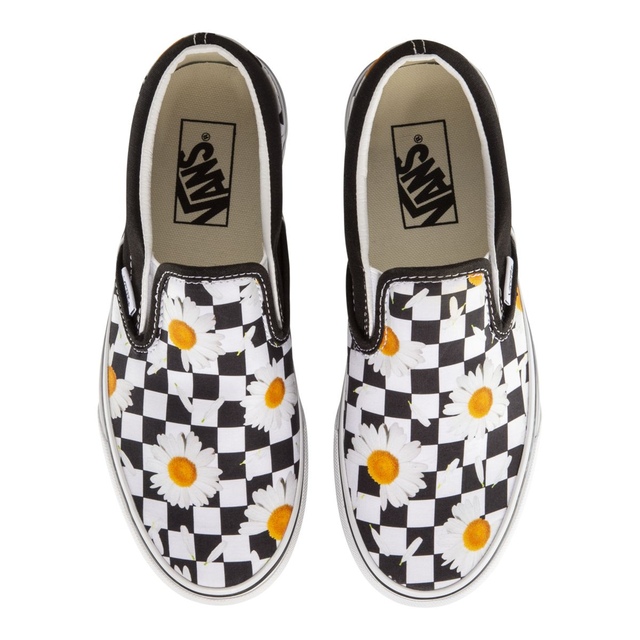 First introduced in 1977, the Vans #98—now known as the Classic Slip-On—instantly became an icon in Southern California. Fast forward to today, and the Classic Slip-On is known worldwide for its comfortable silhouette, easy wearability, and beloved design. Featuring sturdy textile uppers and an allover floral checkerboard print inspired by the childhood game, the Love Me/Love Me Not Classic Slip-On is an everyday essential with true “Off The Wall” style. This timeless slip-on shoe also includes supportive padded collars, elastic side accents, and signature rubber waffle outsoles. • Vans’ iconic slip-on shoe • Low profile textile uppers • Allover daisy checkerboard print • Supportive padded collars • Elastic side accents • Signature rubber waffle outsoles