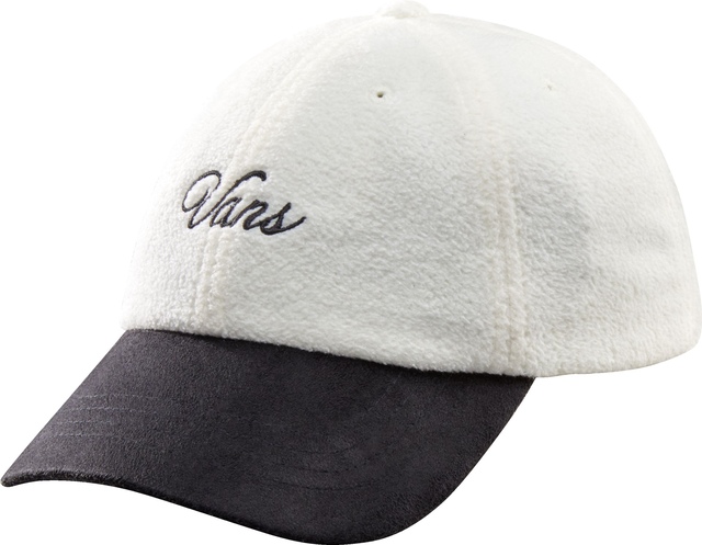 The Vans Women's Script Curved Bill Jockey Hat combines sleek style with comfort. Crafted from breathable, lightweight polyester, it features a six-panel design, a sueded curved bill for sun protection, and an embroidered Vans logo on the front for a touch of signature style.