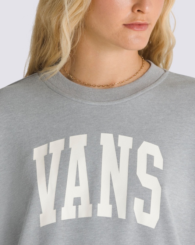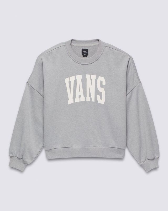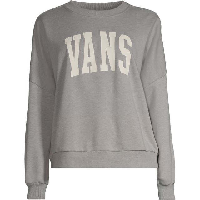 The Vans Women's Stadium Loose Sweatshirt is a relaxed-fit, long sleeve crewneck crafted from a soft, heavyweight cotton-blend French terry fabric. This cozy sweatshirt features a bold screen-printed Vans® logo emblazoned across the chest, adding a stylish touch to the classic design.