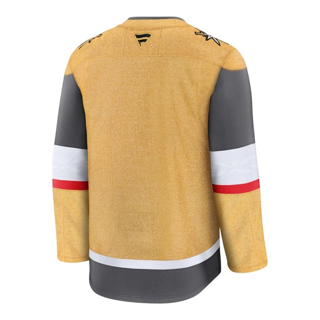 The Vegas Golden Knights Fanatics Premium Home Jersey offers passionate fans an authentic on-ice look with high-quality details. Crafted from recycled polyester fabric, this premium jersey features stitched tackle twill and a vibrant embroidered crest, ensuring a true look and feel.