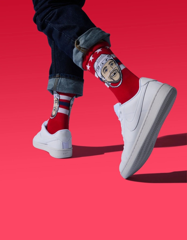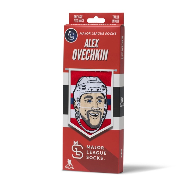 The Washington Capitals Major League Socks Alexander Ovechkin Socks offer premium cotton comfort for hockey fans. These crew-length socks feature a stretchy blend of nylon and Lycra, providing support and durability during intense hockey action. Officially licensed by the NHLPA and NHL Alumni Association.