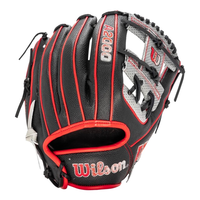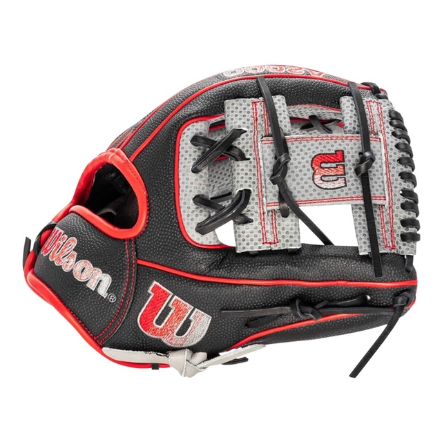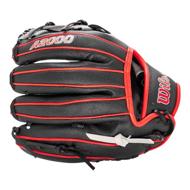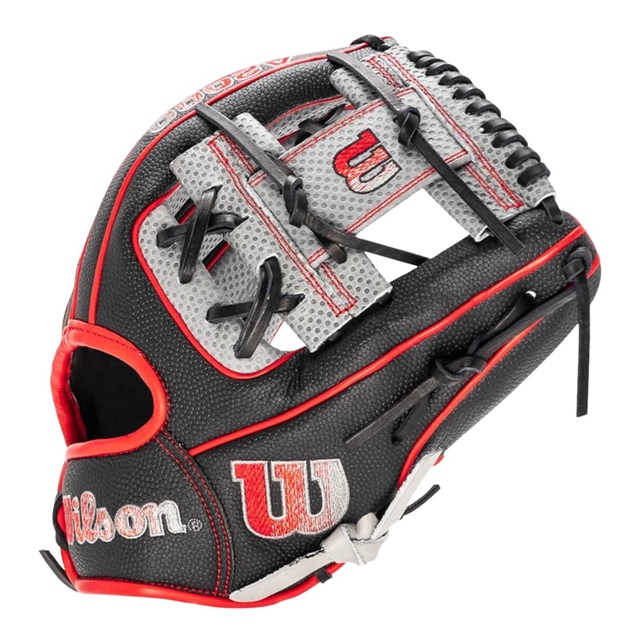 Master the infield with the A2000® SC1975SS, an 11.75 in. baseball glove equipped with the most advanced technologies available. Its 11.75 in. reach allows for easy backhand plays at the hot corner or turning two up the middle, and lightweight Black SuperSkin™ repels moisture and reduces glove weight. Spin Control Technology™ – a patented surface texture in the palm – is engineered to increase friction between the ball and the glove, helping players with picks and transfers to get the out at any base. Complete with gradient Bold Logos fading from Grey to Red, the A2000 SC1975SS makes bigtime plays with a modern look.