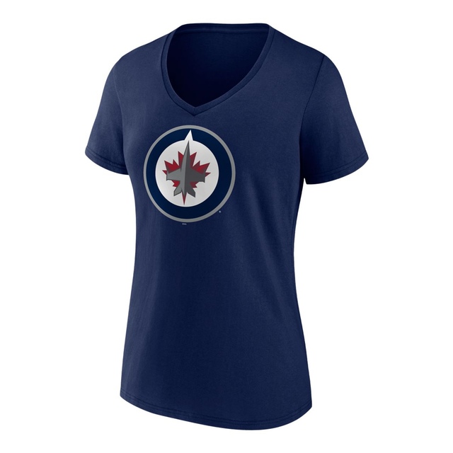 Show off your eye for style while supporting your favorite team in the NHL with this Winnipeg Jets Primary Logo V-neck T-shirt from Fanatics Branded. The captivating team design is sure to make your outfit a highlight on game day. Comfortable and fashionable, this cotton Winnipeg Jets tee will shift your wardrobe into high gear in an instant.