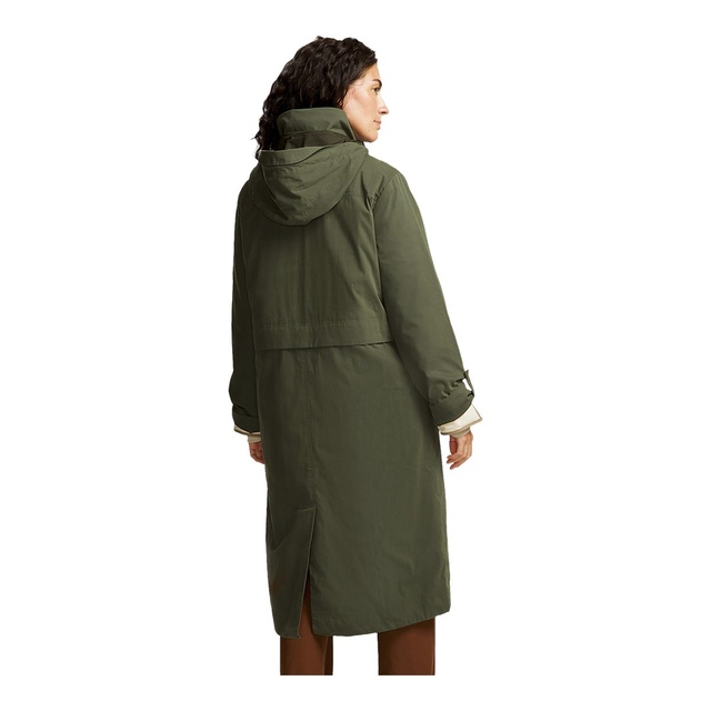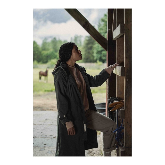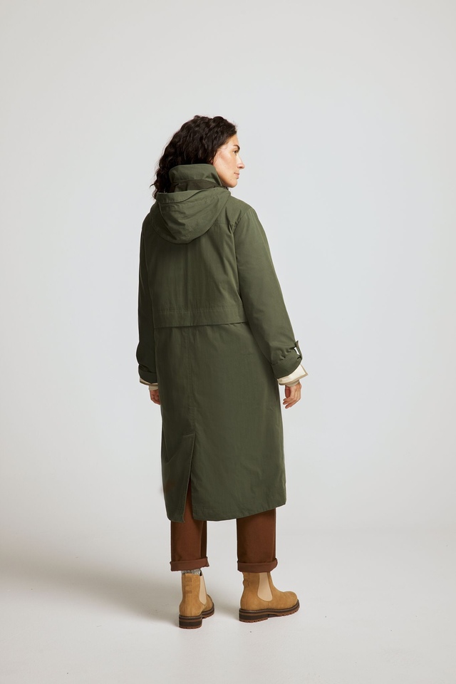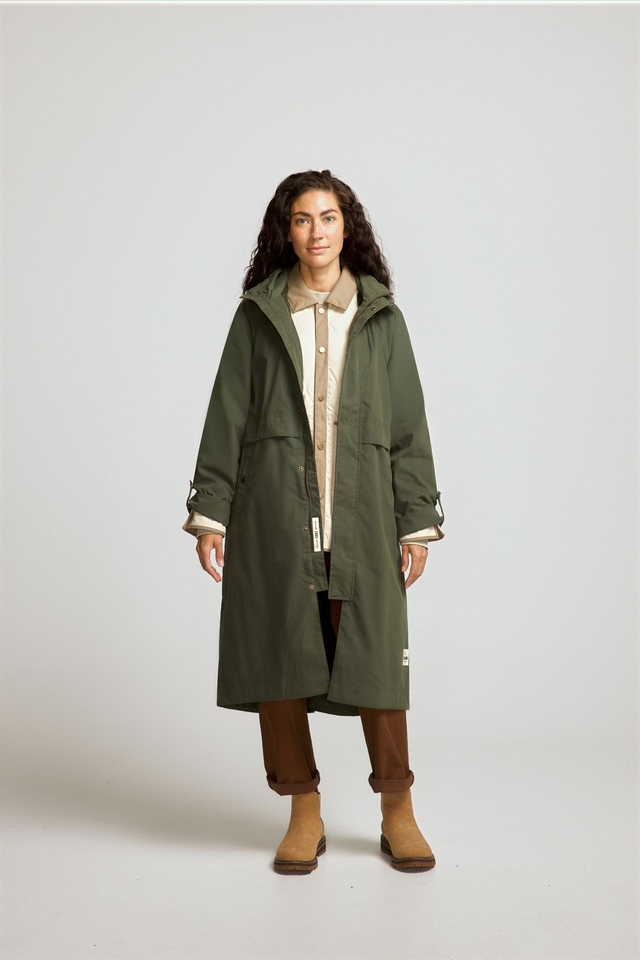 I can’t recommend this jacket enough! I’m 5’9” 145lb and medium fits slightly oversized which I like for layering - a light down jacket fits easily underneath. The sleeves fall past my wrist (but there are snaps to roll them up a few inches) and the length reaches my mid calf which is hard for me to find in a rain jacket. It is very water resistant and windproof. I plan to find out how to wax the canvas to make it even more waterproof. I love the pockets, including the secret inside pocket and the cell phone chest pocket. The waist can be tightened and the hood is adjustable. I’ve worn it to a nice restaurant as it looks much more expensive than it is yet also seems well-made enough to wear camping. It folds down surprisingly small but offers so much warmth and coverage for a tall woman. Thanks Woods for designing this beautiful piece - I will always go to Woods first for quality, thoughtful design and function.