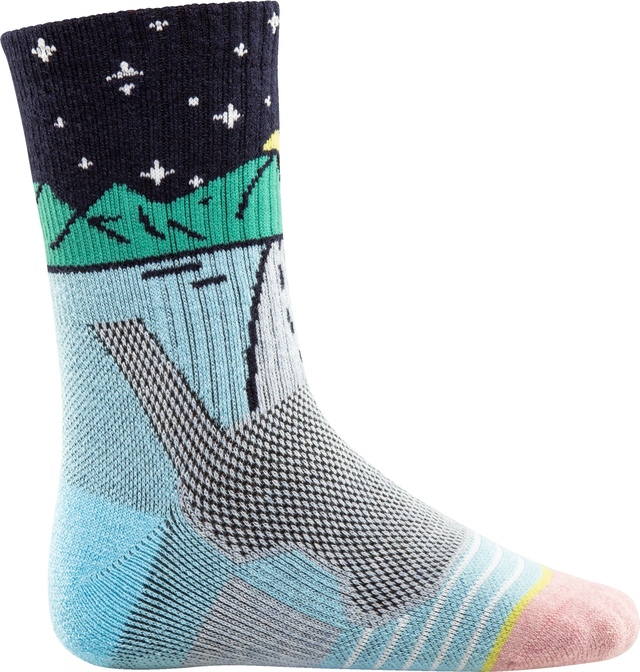 The Woods Kids' Hyland Outdoor Socks offer a blend of comfort and durability for growing feet. They feature a seamless toe, reinforced toe and heel, and boot cushion for enhanced support. These crew-height Woods socks are equipped with arch support, ensuring a snug, secure fit for active kids.