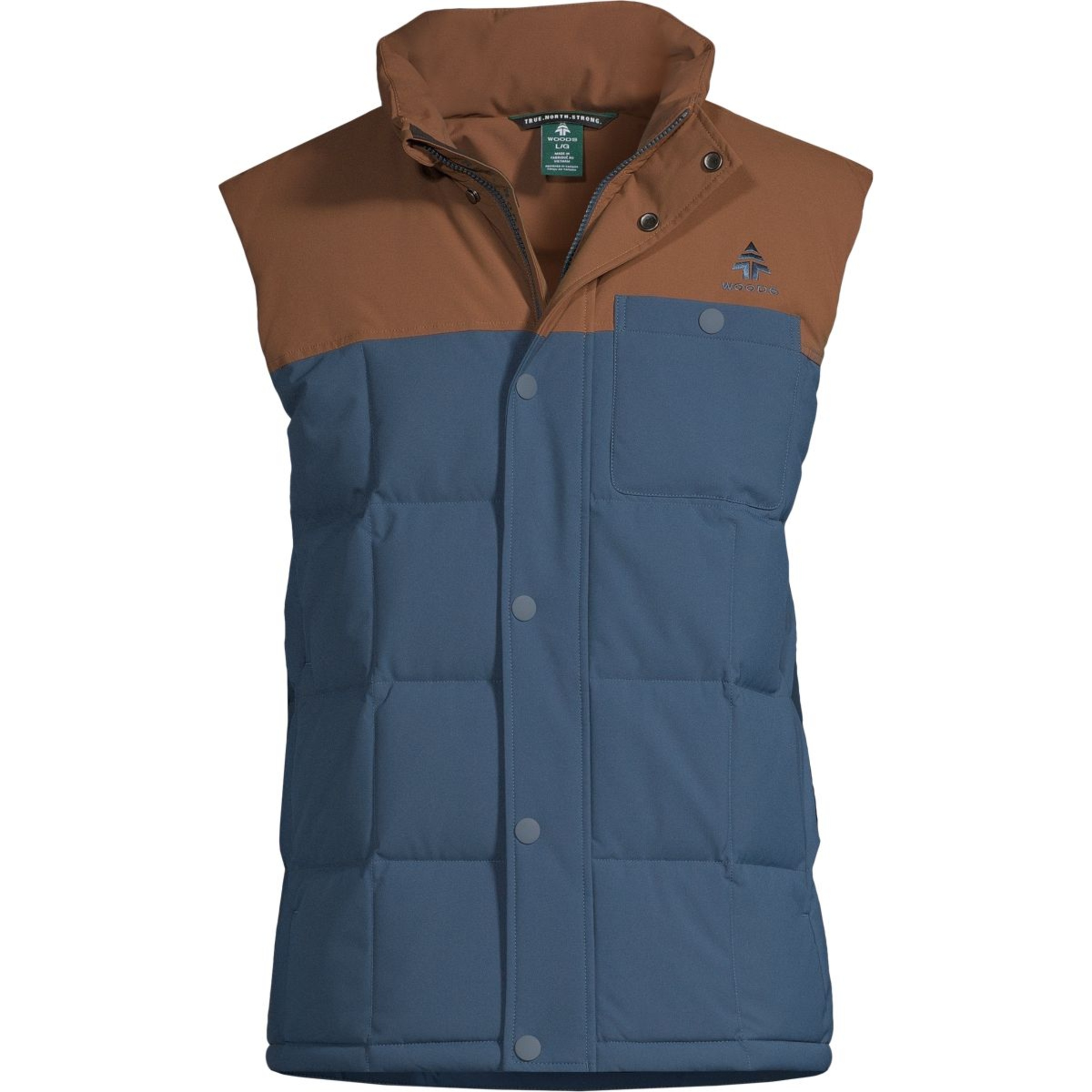 Keep comfy in the outdoors with the Woods Men's Adrian Down Vest. Featuring Canatite® Active technology, this vest has a waterproof, breathable and windproof membrane for protection from the elements. The 700 Fill Power Allied Feather & Down® Duck Down provides plenty of warmth, and this Woods vest has zippered pockets and secure snap-tab closures for essential storage.