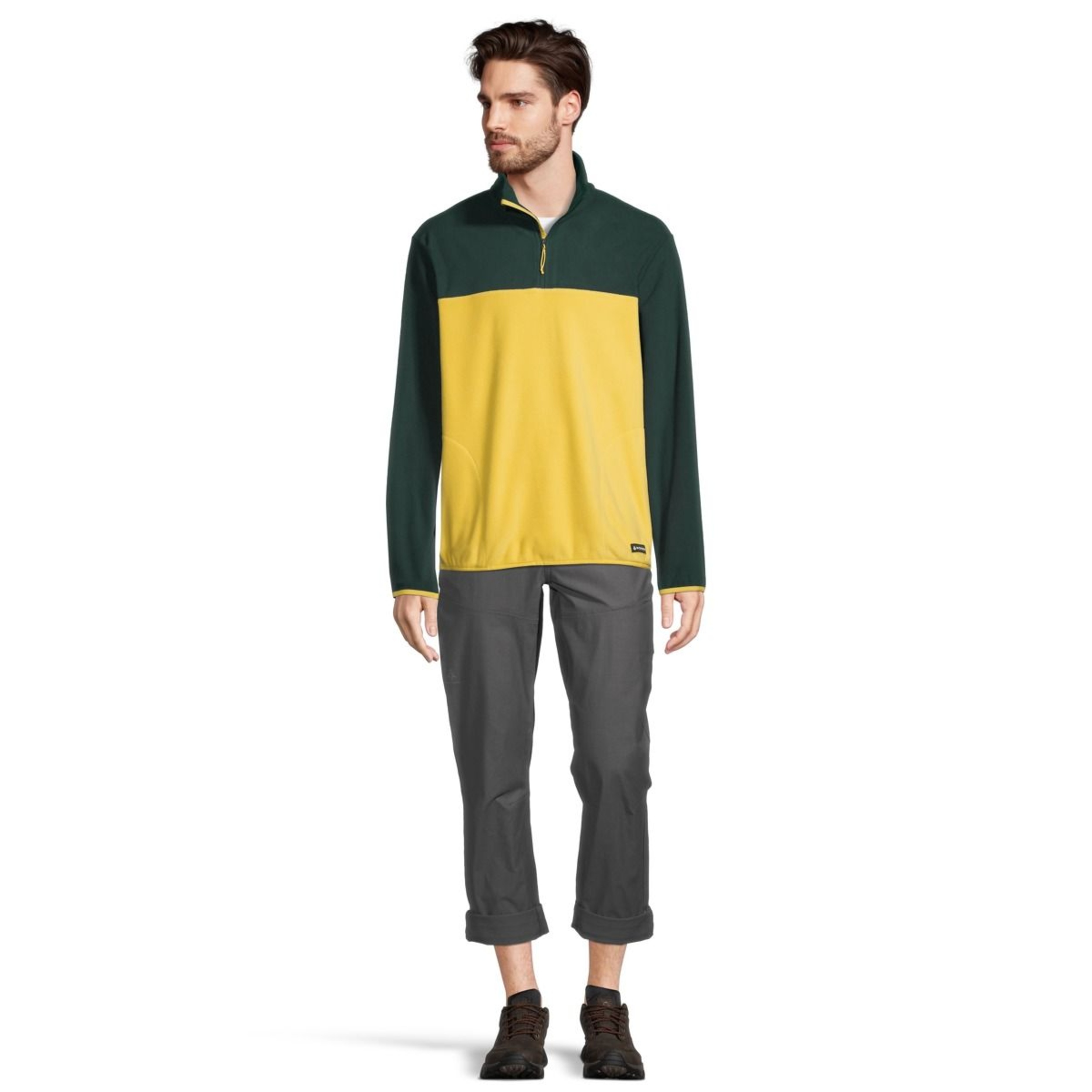 The Woods Men's Blakiston 1/4 Zip Fleece Sweater is the ideal option for cool-weather layering. Featuring an ultrasoft microfleece construction with a stand-up double fleece collar, this pullover sweater provides added warmth on cool days and chilly nights. This Woods men's sweater also has a pullover design with a 1/4 zip, Lycra binding trim and hand pockets to blend comfort with functional style.