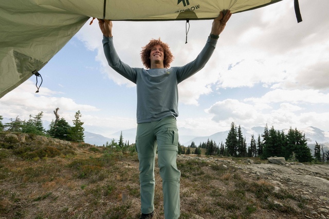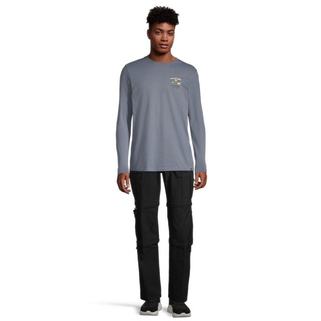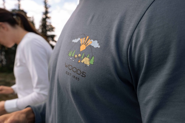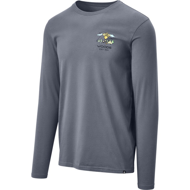The Woods Men's Cayley Scene Long Sleeve T Shirt celebrates the great outdoors with iconic Woods imagery. This casual cotton blend tee offers a relaxed fit and lightweight, breathable fabric for all-day comfort. Made with recycled materials, it's a sustainable choice for your outdoor adventures.
