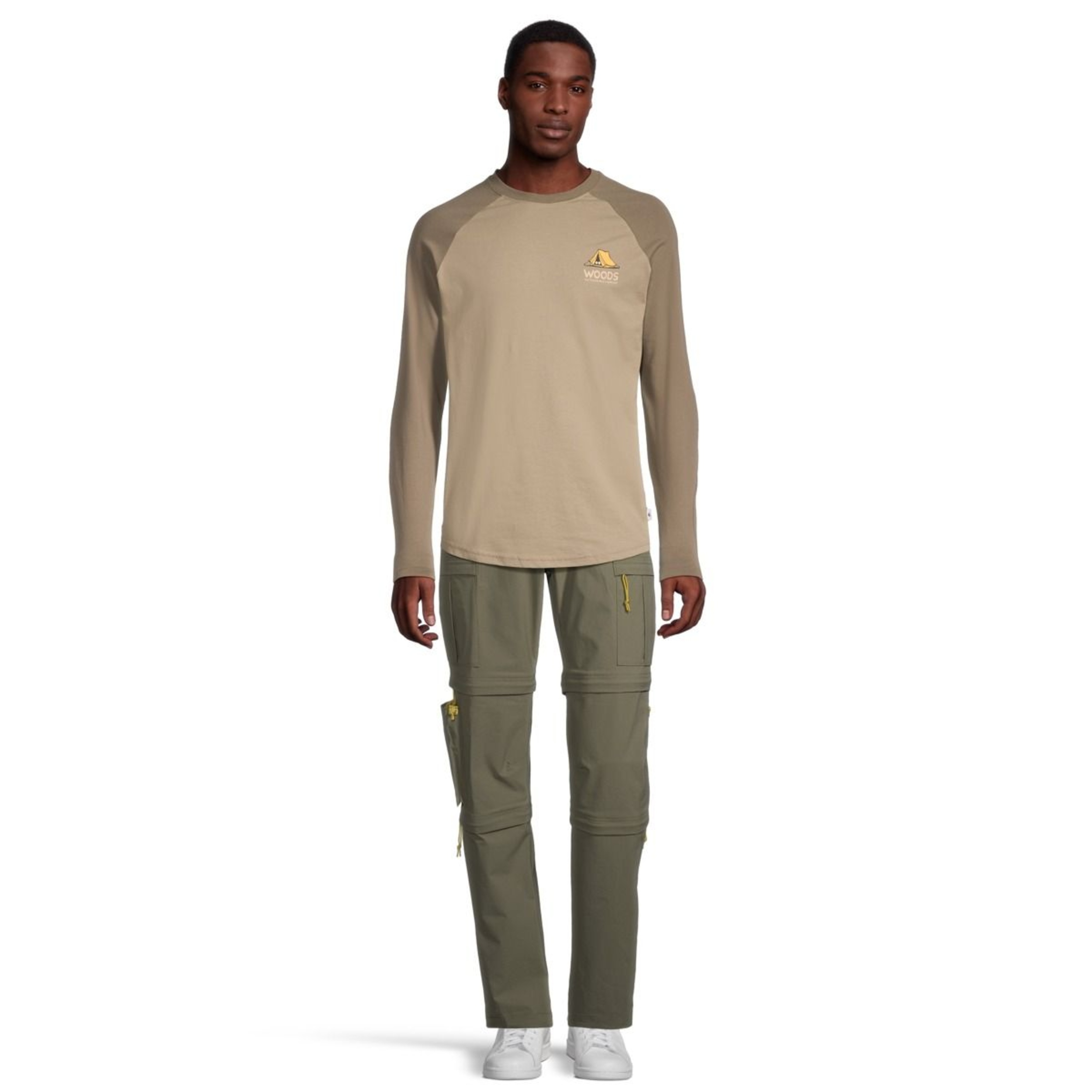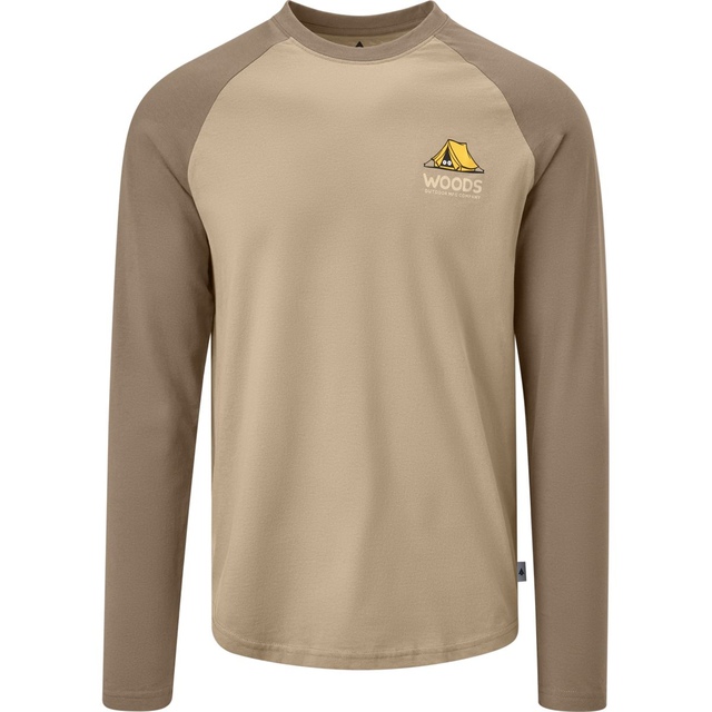 The Woods Men's Dalton Tent Long Sleeve T Shirt is a lightweight, cotton-blend baseball tee designed for relaxing days at the campsite. Crafted with recycled materials, this crew neck shirt features a relaxed, comfortable fit and raglan sleeves for unrestricted movement. Its breathable fabric and casual style make it an ideal choice for outdoor adventures or lounging at home.