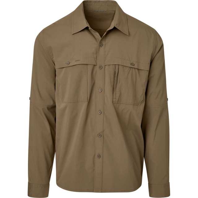 The go-anywhere Woods™ Robson Utility shirt combines moisture-wicking materials with style for any outdoor or urban pursuit whether you are in town or on the trail. This utility button-up shirt features back vent meshing to keep you cool and a sun-protective collar to keep rays off your neck. Roll-up sleeves and plenty of pockets offer versatility for your next hike.