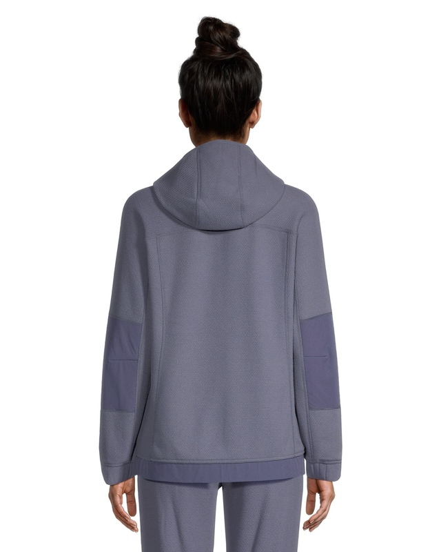 Stay cozy and protected with the Woods Women's Alma Fleece Zip Hoodie. Made from recycled polyester, this hoodie features stretch woven overlays, a Lycra bound hood for a snug fit and secured hand pockets with a key clip. With stretch panels for enhanced durability, this Woods Alma hoodie is a practical layering piece for both urban and wilderness settings.
