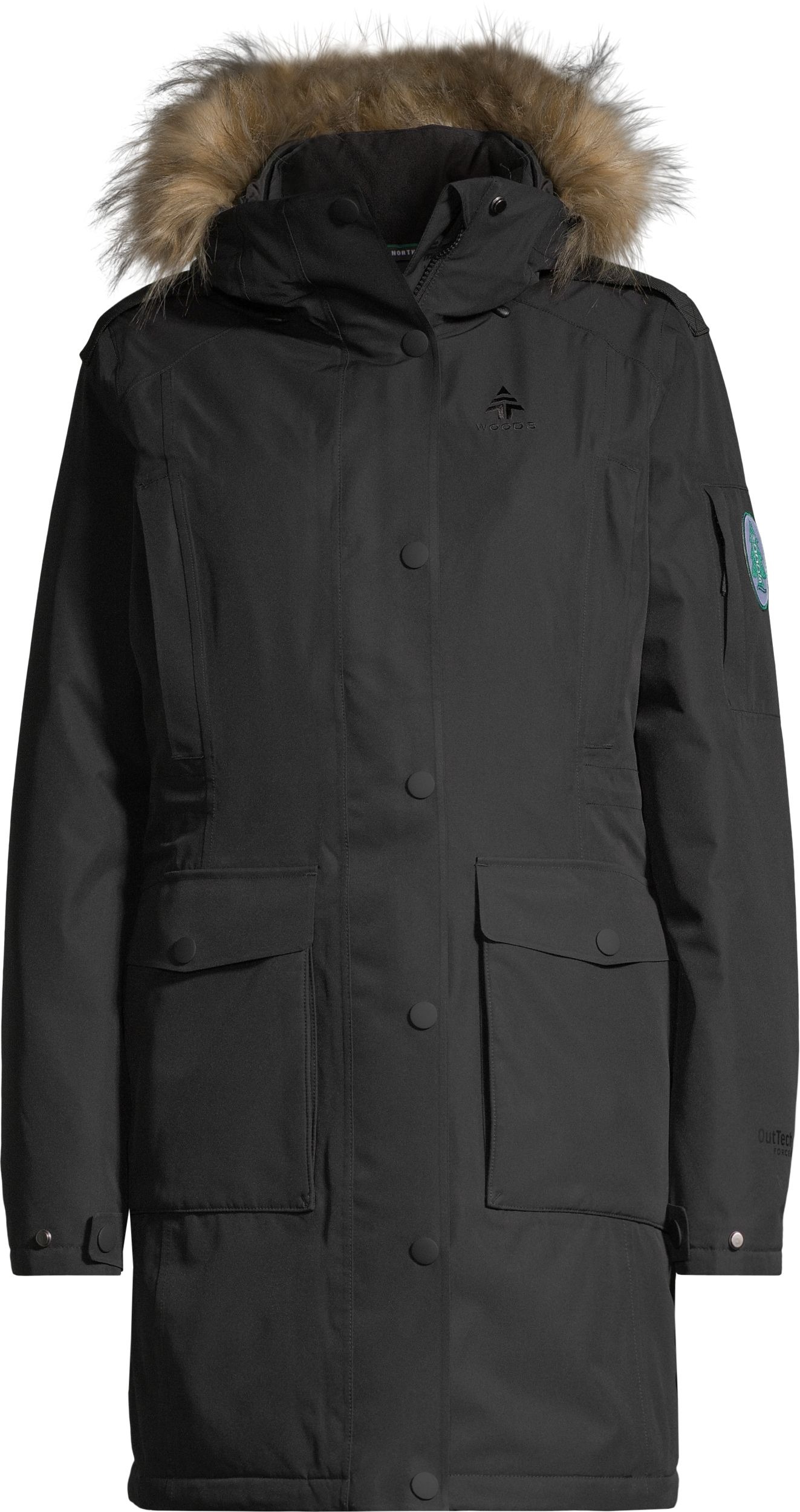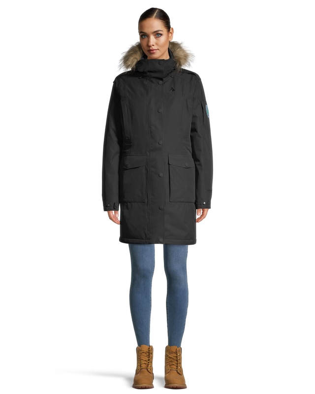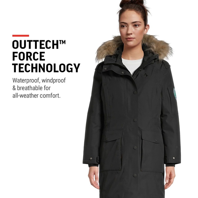 Stay cozy this winter with the comfortable, extra warm Woods Women’s Avens Arctic™ Down Parka. Engineered to withstand Canadian winters, it features 600 fill power ALLIED Feather + Down™ insulation and waterproof OutTech™ FORCE. The Woods parka includes a PrimaLoft® Gold Aerogel insulated pocket and removable faux fur trim, ensuring warmth and functionality.
