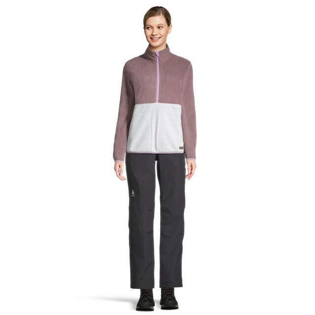 Stay warm and stylish with the Woods Women's Blakiston 1/4 Zip Fleece Top. Perfect for layering in cooler weather, it offers comfort and warmth with its mid-weight design. The additional side pockets are ideal for keeping your hands warm on chilly days, making it a versatile addition to your wardrobe.