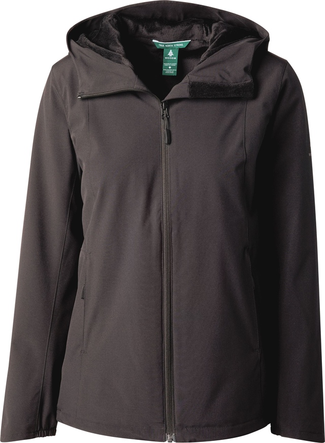 Brave wet city weather with the Woods Women's Cavell Fleece Lined Jacket. This midlayer jacket features a longer length, high collar, and set-in hood for enhanced protection against the elements, while the soft fleece lining and stretch fabric ensure comfort and ease of movement.
