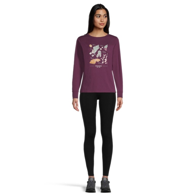 The Woods Women's Cayley Foraging Long Sleeve T Shirt is the perfect casual clothing for those who love spending time in the outdoors. Made from an ultra-soft premium cotton blend, it features iconic Woods printing celebrating your true inspiration of nature. This classic fit long sleeve t shirt has a relaxed fit and is lightweight for exploring the woods or for a quick stroll for errands.