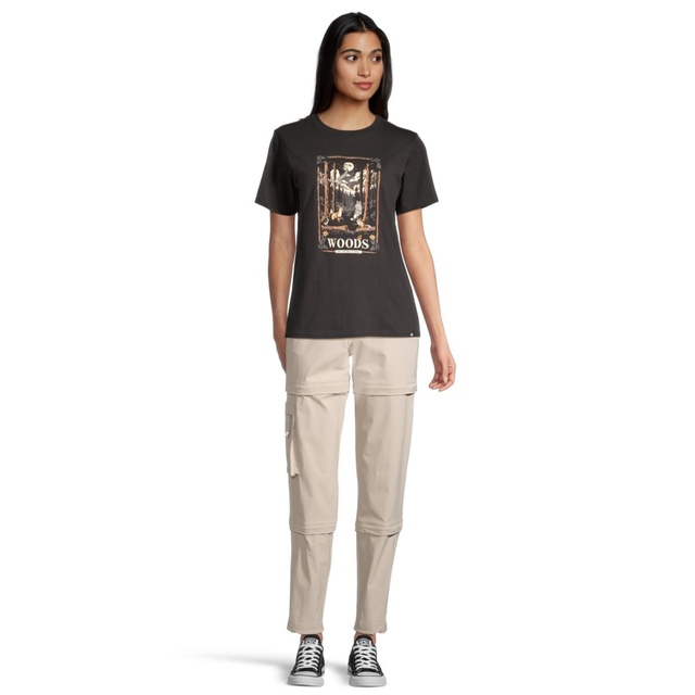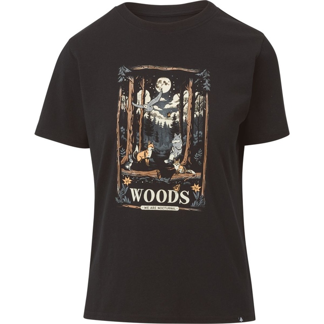 Embrace the outdoors with the Woods Women's Cayley Graphic T-Shirt. Made with 40% recycled polyester, this tee features the brand's iconic imagery and a relaxed fit for ultimate comfort during your adventures. Perfect for any casual outing, it combines style and sustainability effortlessly.