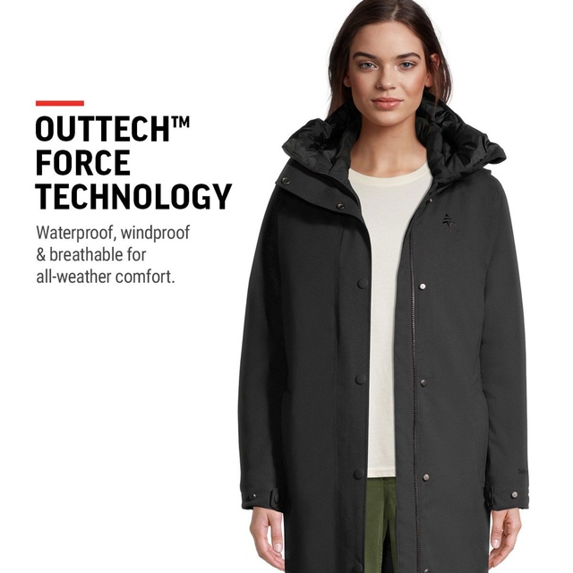 Welcome to the world of Woods women's Elias Arctic down parka! This is the perfect coat to keep you nice and toasty in the coldest of weather. The Outtech™ pro protection ensures that you'll stay dry and comfortable in even the most extreme conditions. The 700 Fill Power Allied Feather & Down® Duck Down is the perfect insulation for keeping you warm, and the PrimaLoft® Aerogel ensures that you'll stay comfortable even when wet. The fully seam-taped construction and internal wind skirt make this coat perfect for any adventure. The performance fleece thermal fleece inner cuffs and internal backpack straps make this coat the ultimate in cold weather protection.