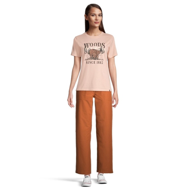 The Woods Women's Heritage Pants are inspired by over 140 years of Canadian exploration. Made from durable canvas fabric with added stretch, they offer comfort and flexibility for everyday wear. Featuring classic 5-pocket styling, an adjustable waist, and an easy-to-roll hem, these pants are built for adventure. Crafted with 25% recycled polyester, they combine rugged durability with eco-friendly materials.