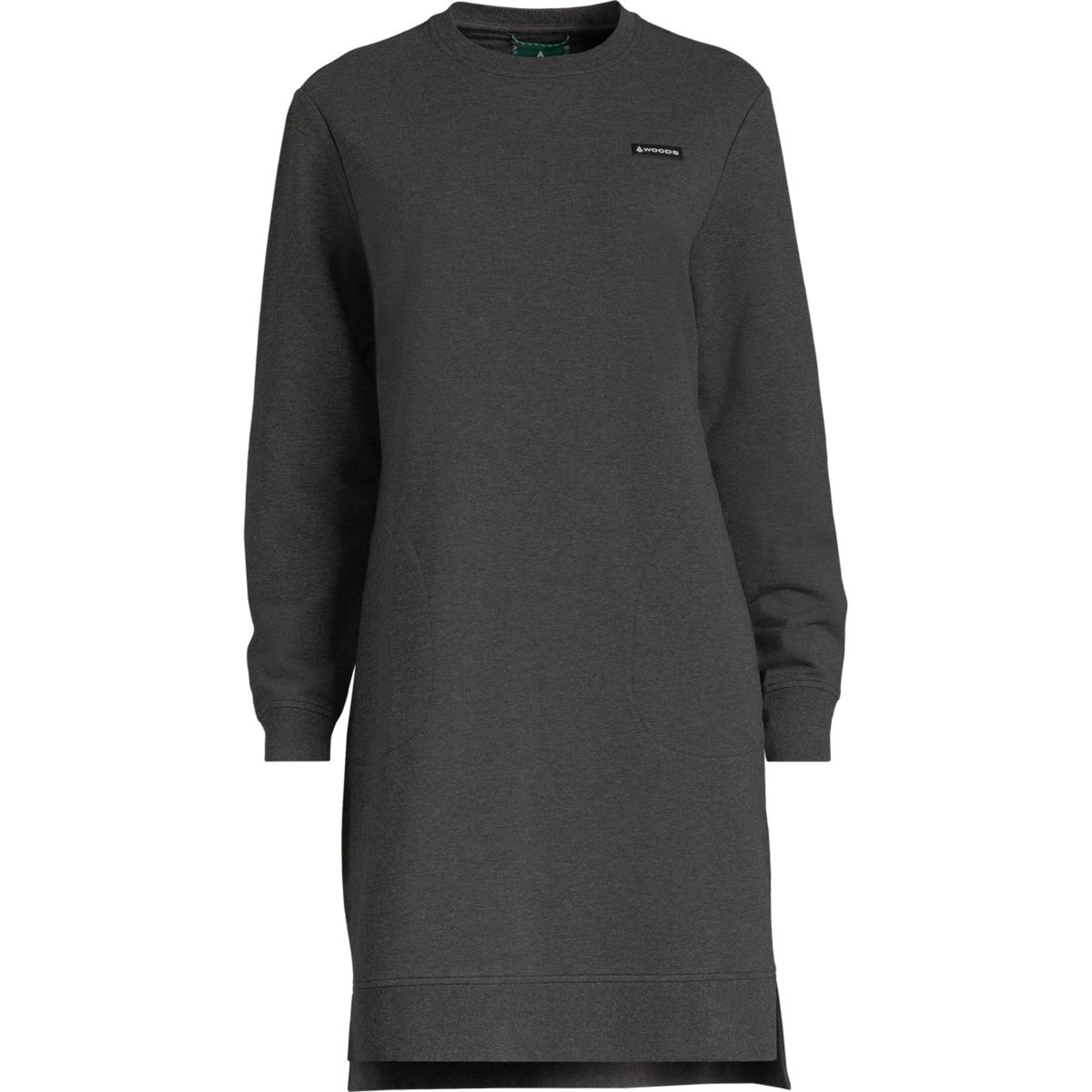 The Woods Women's Lawson Crew Neck Dress is made using breathable French terry fabric for comfort. This relaxed-fit dress features functional side pockets for storing essentials and ribbed knit panelling for added style, making it perfect for casual everyday wear.