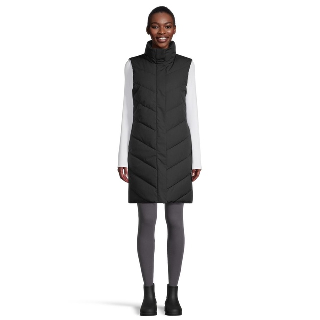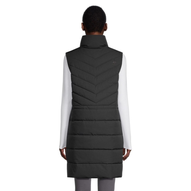The Woods Women's Lipsett Down Baffled Vest is crafted from recycled polyester for sustainable insulation. Its water-resistant technology helps block moisture, while 600 Fill Power ALLIED Feather + Down™ Duck Down provides excellent heat retention to keep you warm. With an interior waist adjustment for a tailored fit and a long length for full-body coverage, this vest offers superior protection against cold winter conditions.