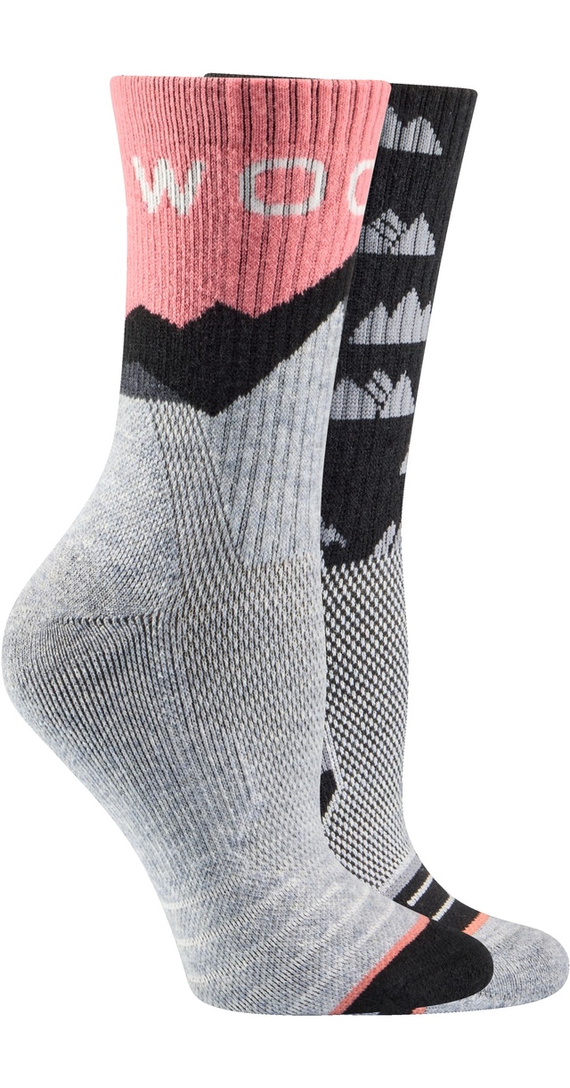 The Woods Women's Macbrien Hiking Quarter Socks feature a cozy Merino wool blend that wicks moisture and provides warmth on the trail. A seamless toe construction prevents irritation, and outdoor-inspired graphics with the Woods Tree logo add a stylish touch to these high-performance hiking socks.