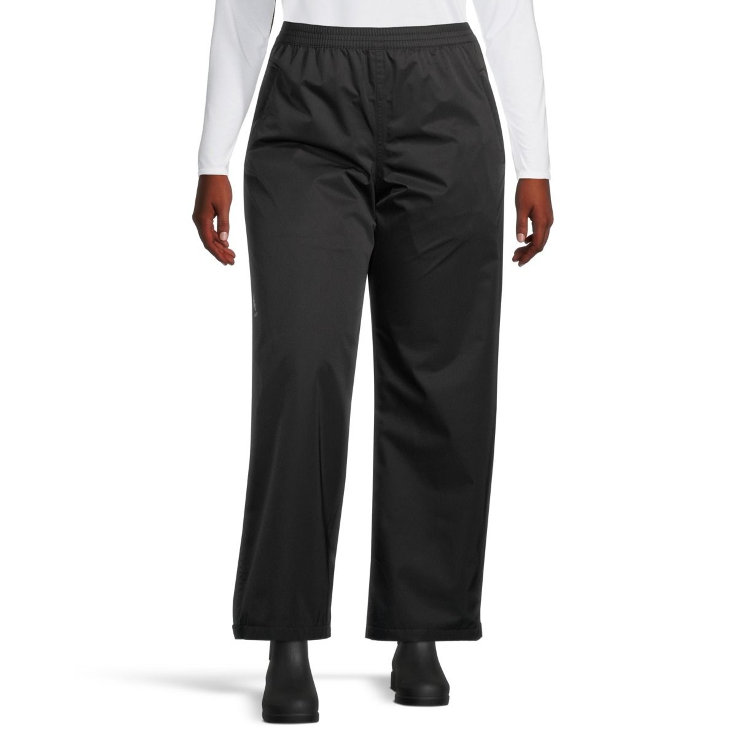 The Woods Women's Plus Size Quadra Rain Pants offer eco-friendly protection with an 80% recycled polyester construction. Lightweight and packable, these rain pants leverage OutTech™ FORCE technology to safeguard you from the elements during outdoor adventures.