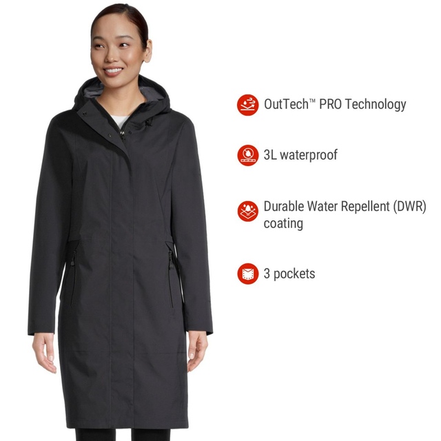 Love the length and the fabric feels good even though it’s waterproof. Wore it all over Europe with layers underneath.